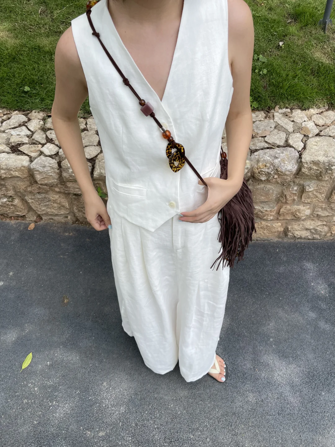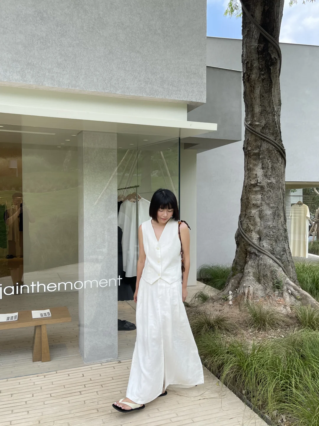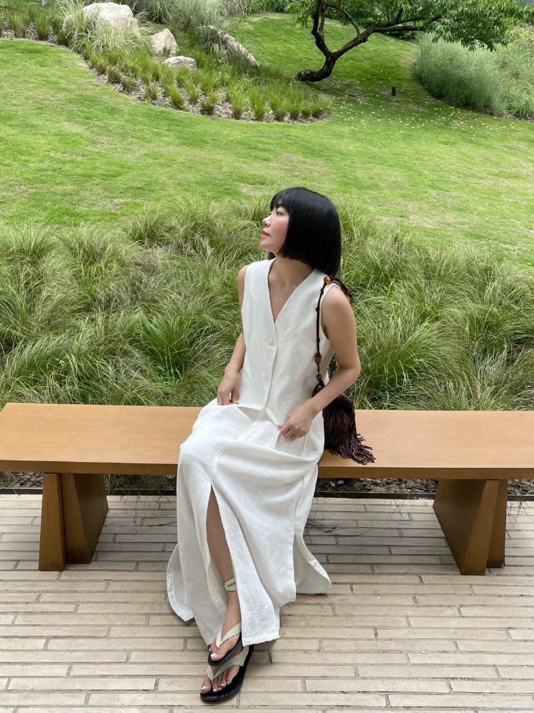 夏天在自然公园里,穿白色背心搭配黄色牛仔裤,妥妥就是甜美少女本女。白色背心清爽又