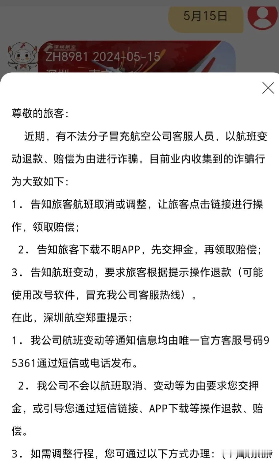 今天中午下楼散步,看到这路边的提示牌,我深有感触。 上个月中旬去南京出差前,我接到一个电话,对方称是深圳航空的客服人员,还报出来他的工号,说是我乘坐的航班因机械故障被取消了,需要改乘其他班次的航班。 我说好,不过先要跟同事确认一下是否要改签,赶紧跟同事把这情况说了,征得同意后,我又回拨给我打电话的号码,刚开始显示无法接通,后来再打时已经关机了。 我觉得有点不对劲,打了航空公司官方电话,结果得知航班正常,没有取消,才知道被骗了。幸亏打电话核实一下,也幸亏那个电话后来打不通了,不然还真有可能被骗。 提醒各位朋友,尽量别接陌生来电,特别是遇到需要提供个人信息的,要保持高度警惕,以免遭受财产损失。