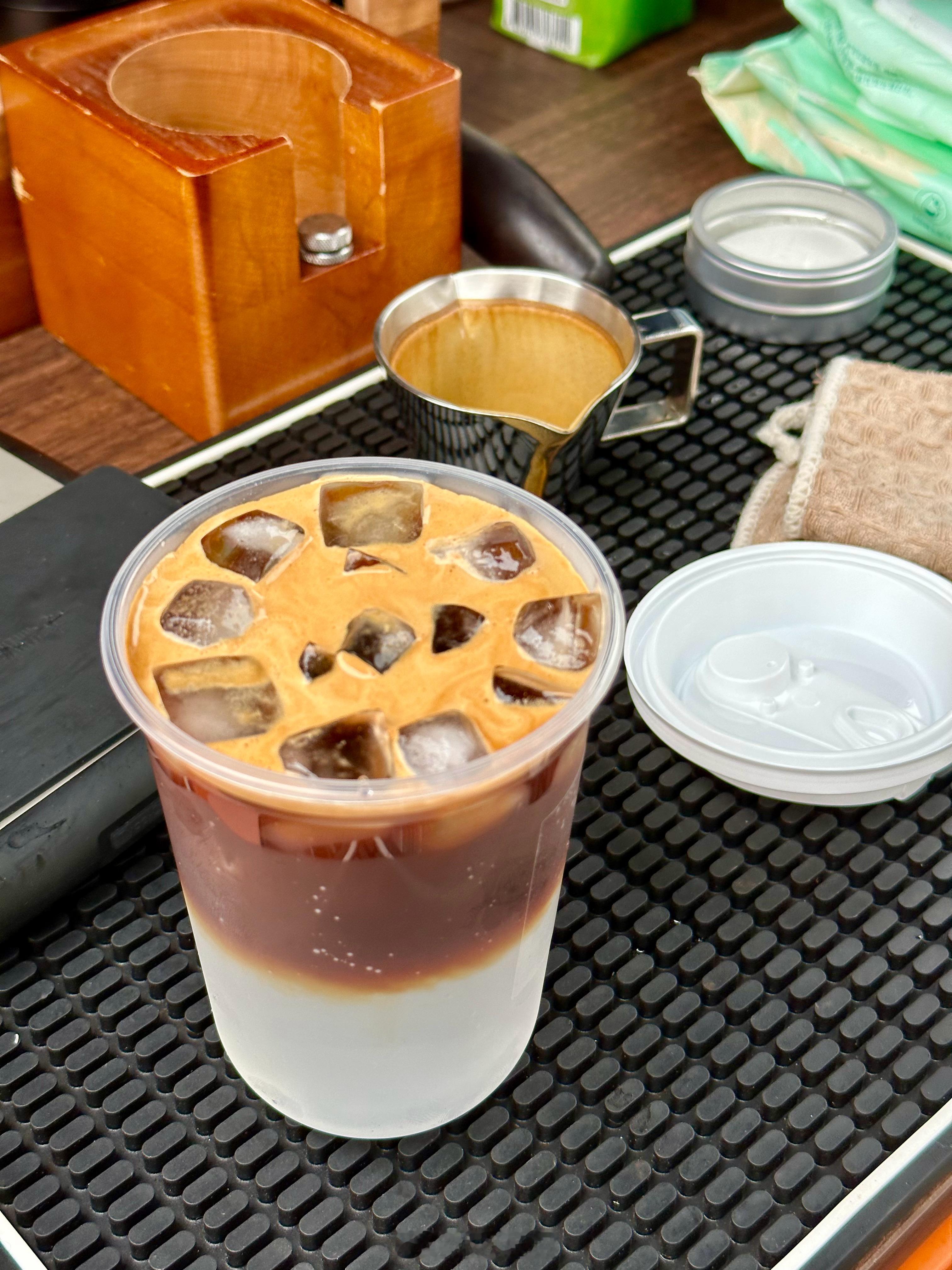 在天津,守着海边随时能找到度假的感觉。和朋友去看海边的妈祖,遇见一个咖啡车🚗,椰青咖啡非常好喝,我们开心到模糊。