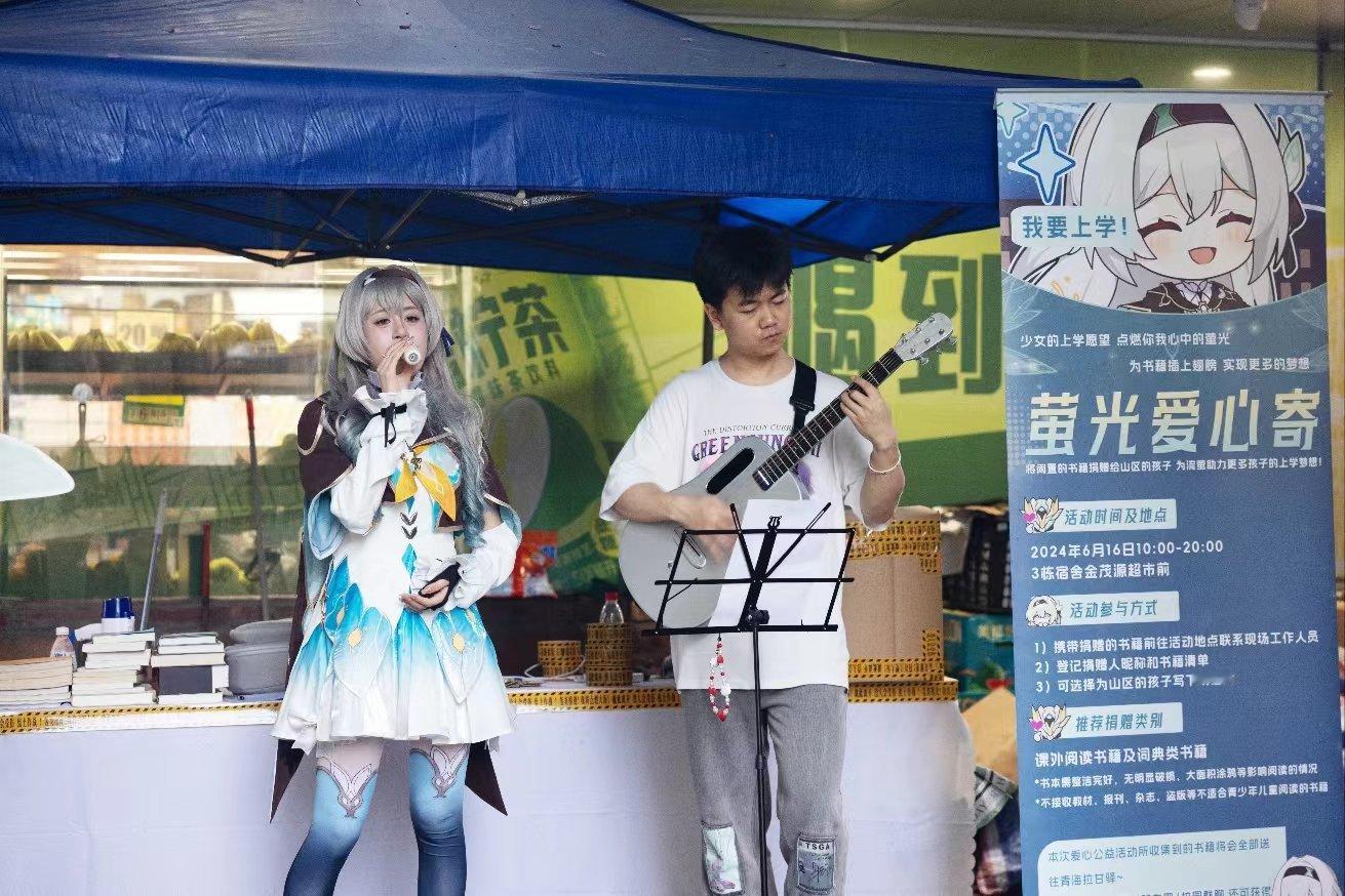 ★流萤厨在高校举办小型公益捐书活动,实现流萤的校园梦。现场还邀请了乐队的朋友cos流萤为公益活动做宣传。没想到流萤厨从未忘记萤宝想要上学的这个愿望!