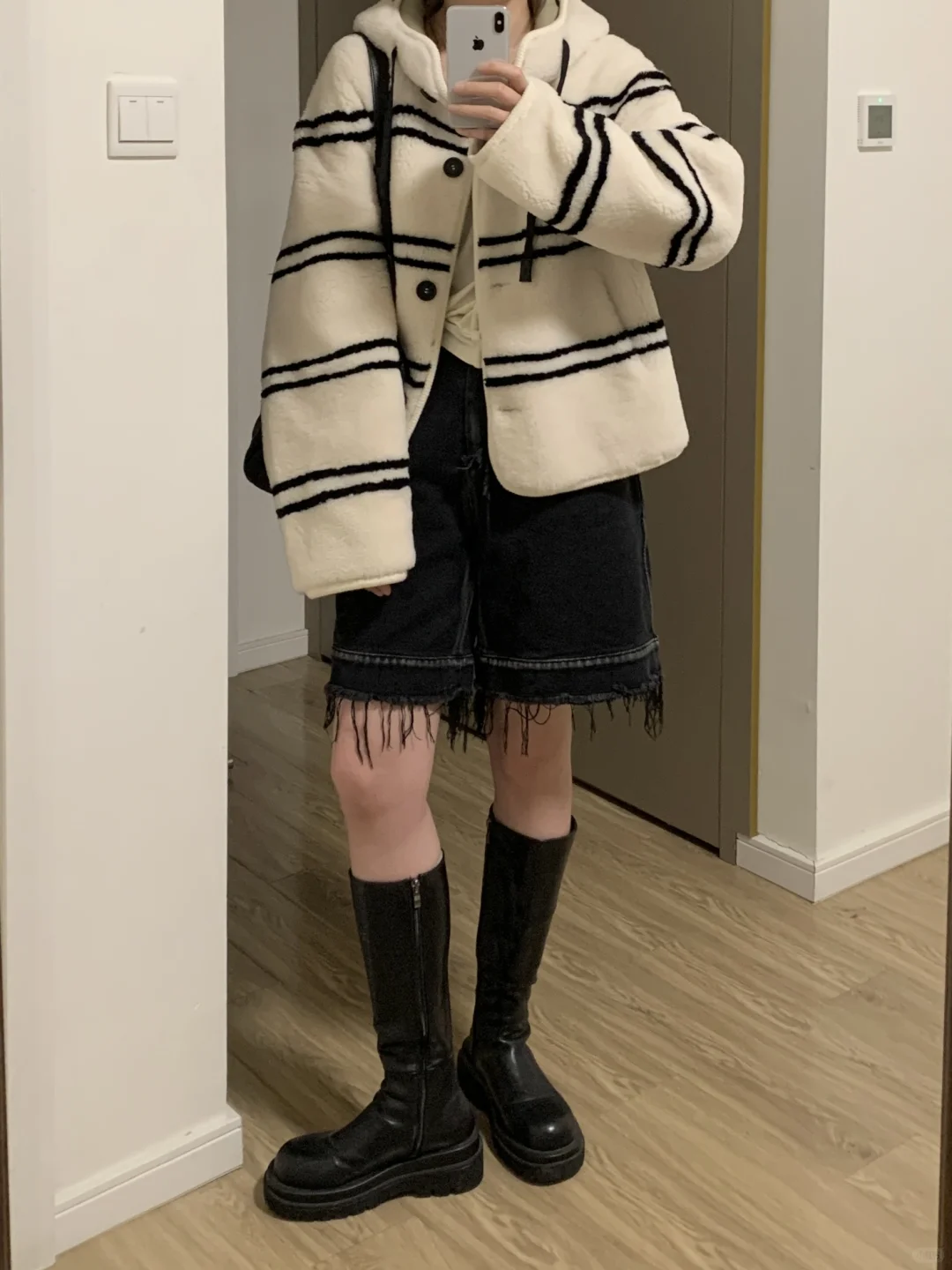 皮草 皮毛一体外套 休闲穿搭 不费力穿搭