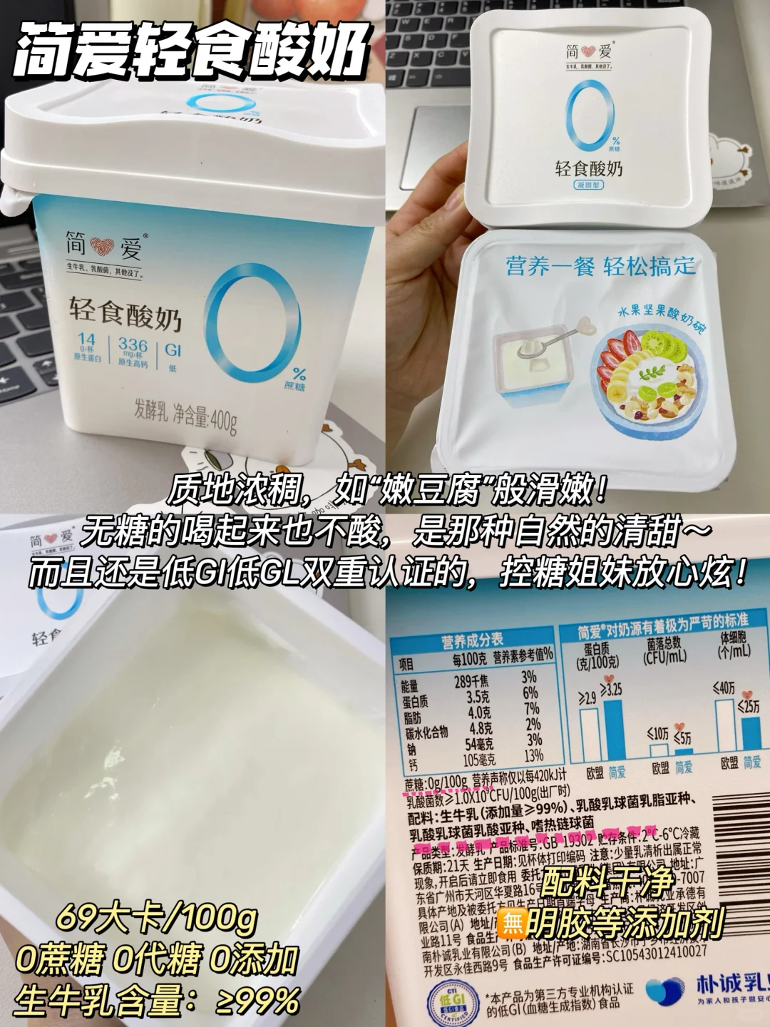 而且简爱无糖轻食酸奶还是低GI、低GL,控糖姐妹放心炫!