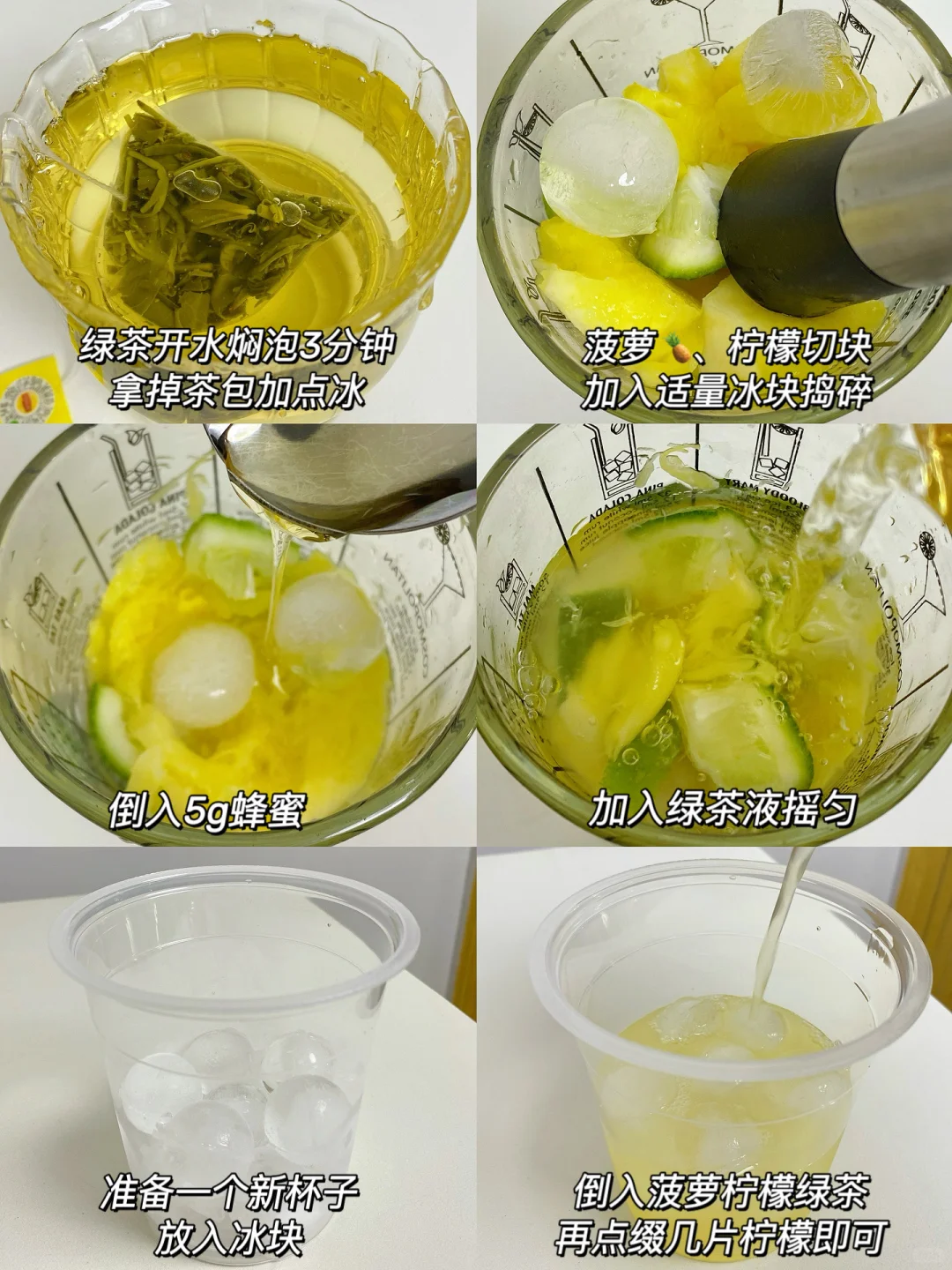 ✅食材准备:菠萝、 柠檬、立顿乐活绿茶、蜂蜜、冰块