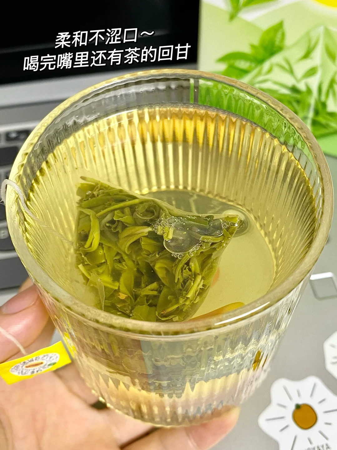 1️⃣绿茶开水焖泡3分钟,拿掉茶包加点冰