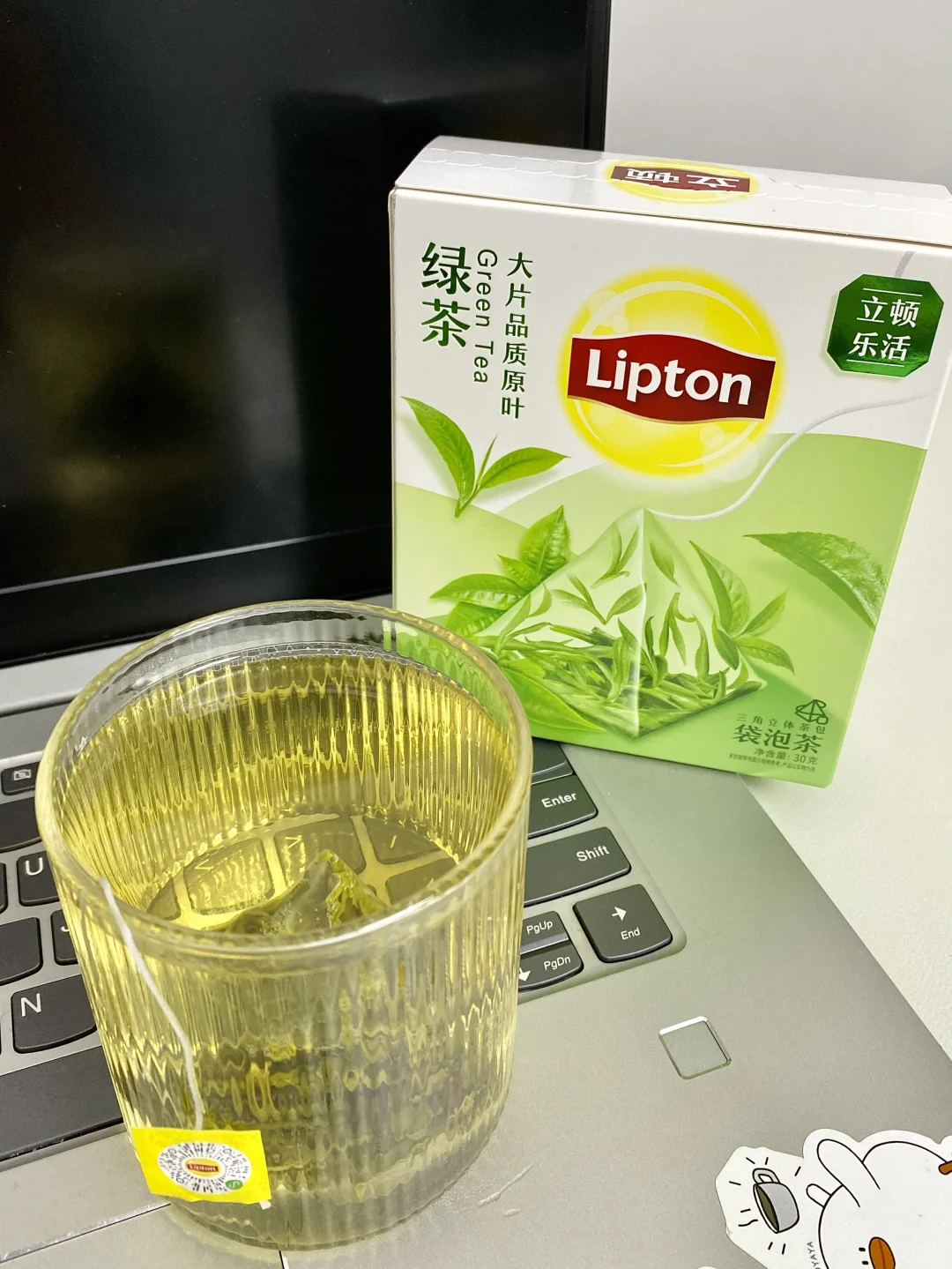 茶底我用的新入手的立顿乐活绿茶,独立三角茶包冲泡很方便