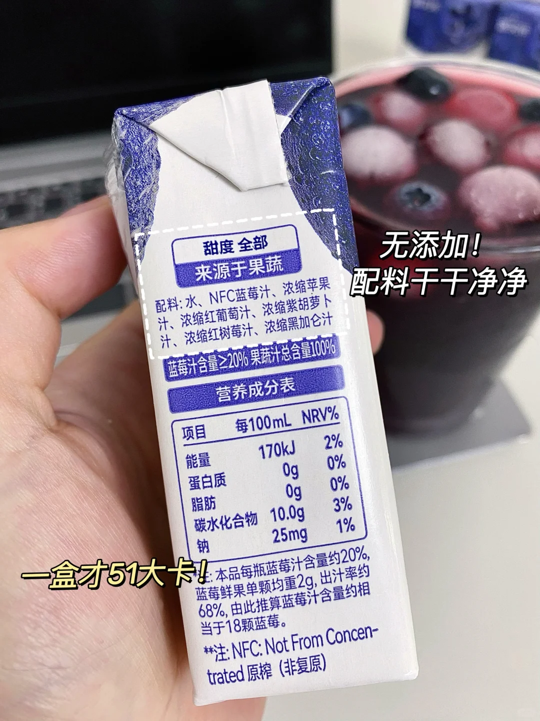 大学喝了两年的源究所蓝莓汁出mini口袋版啦! 出门揣兜里简直不要太方便!! 一瓶含18颗蓝莓的花青素,对眼睛皮肤都hin好[赞R] 配料表真的贼干净!100%纯果汁!! 而且0香精0色素,甚至连糖都没加!! 甜度都是水果本身的!!!才51大卡!不到半个🍎热量!! 一打开果香真的超超超浓郁啊啊啊~🤤 喝起来酸酸甜甜的,开胃又解腻!口袋版的平时喝一瓶刚刚好,解馋还低负担! 减旨期姐妹也可以放心囤啦!