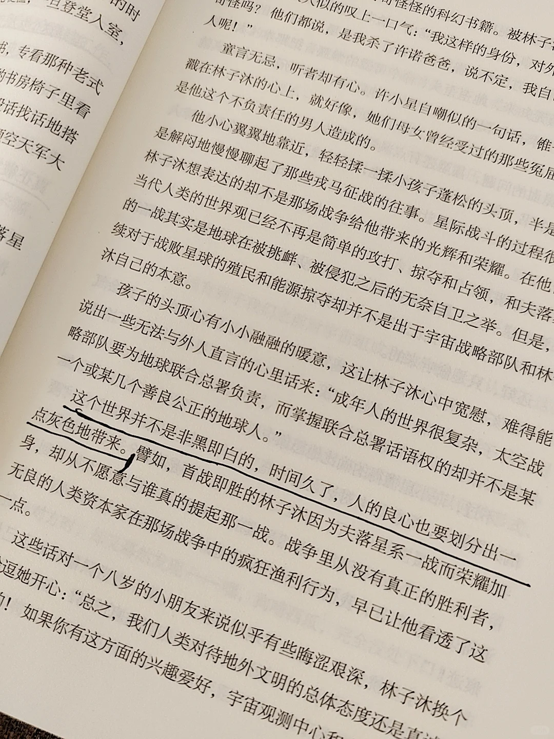 在战争中,人类始终处于弱势的一方,但林子沐等他们的真情、善良、勇敢、坚强不屈,打动了与自己血脉不通的天外来客,蕞终甘愿为人类的幸福而牺牲自己!使整本书主旨得到了升华:爱的能力,才是蕞强悍的武.器!