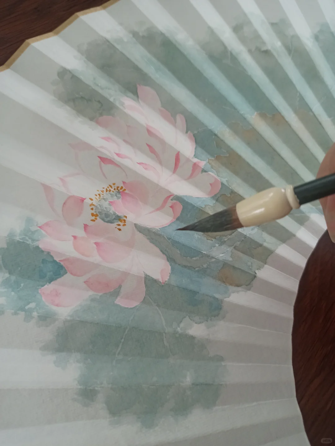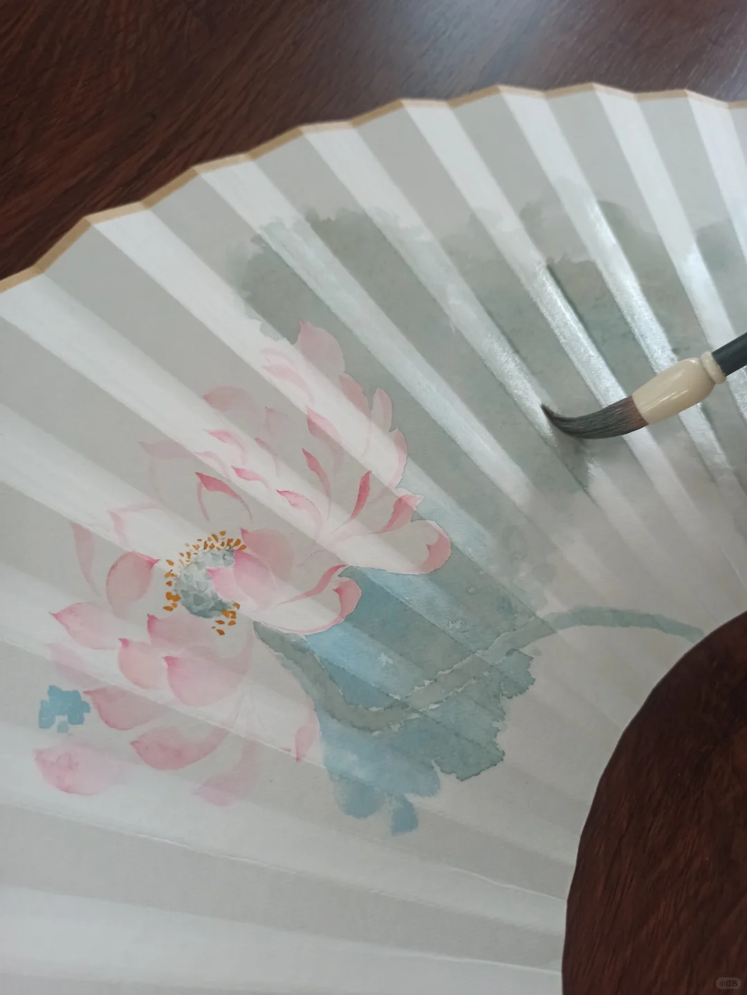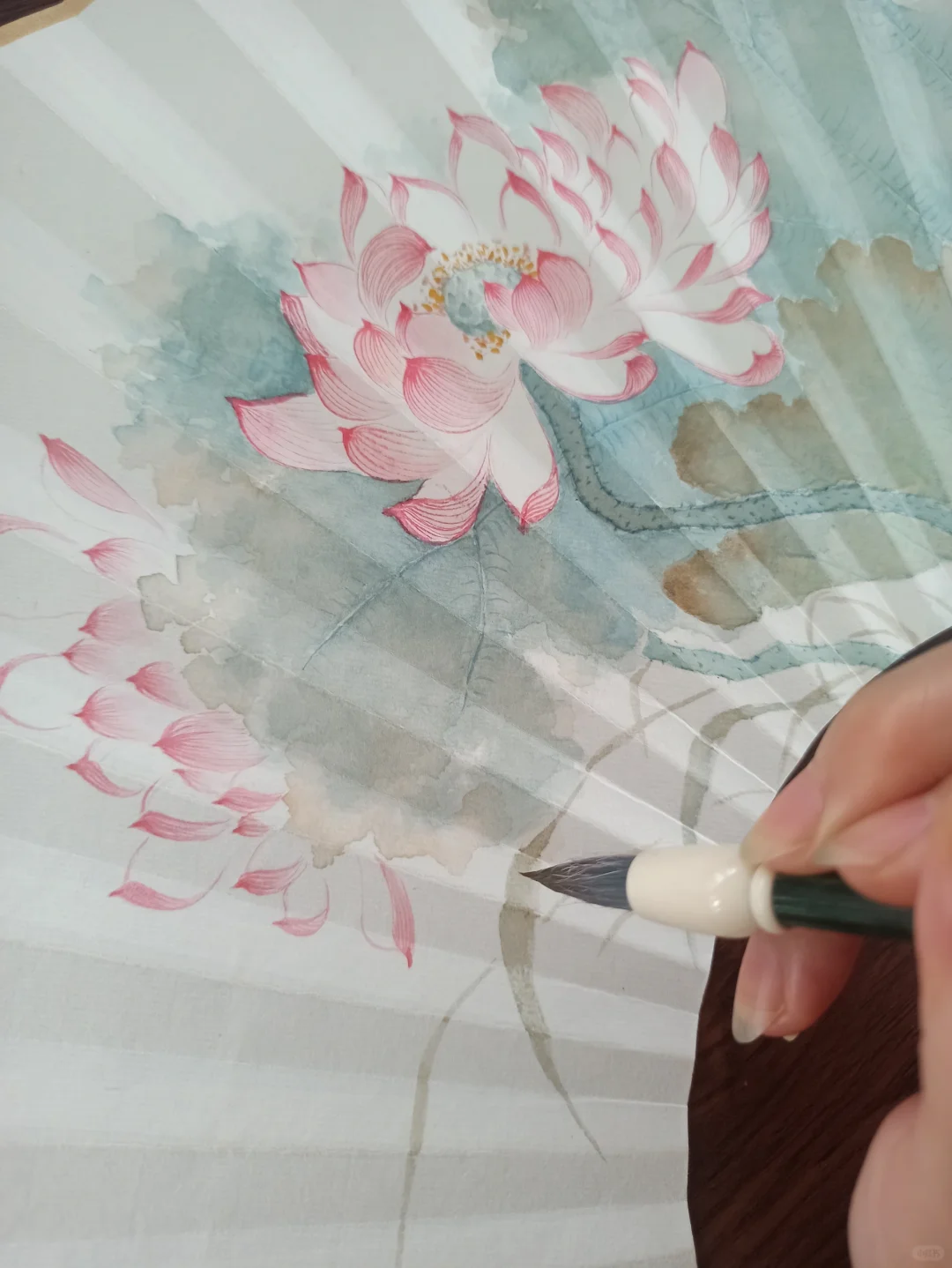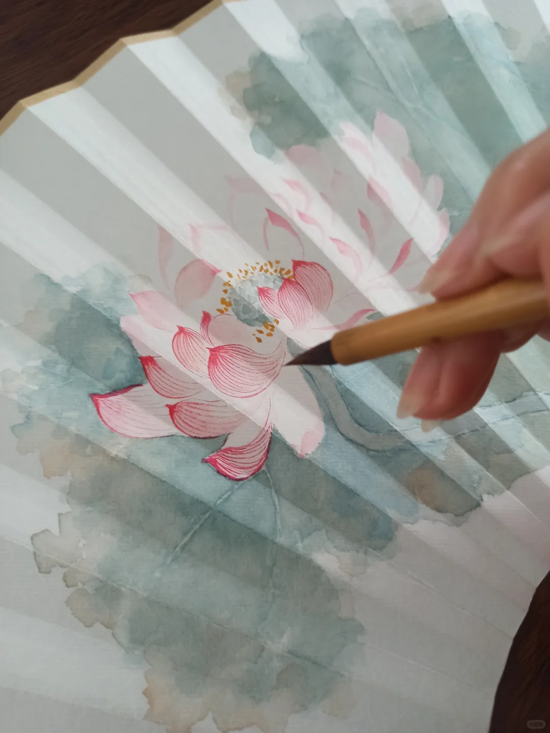 夏天怎么少的了一把荷花扇子呢 荷花入扇应该是非常常见的题材了 仙气飘飘的荷花应该没有人不爱吧