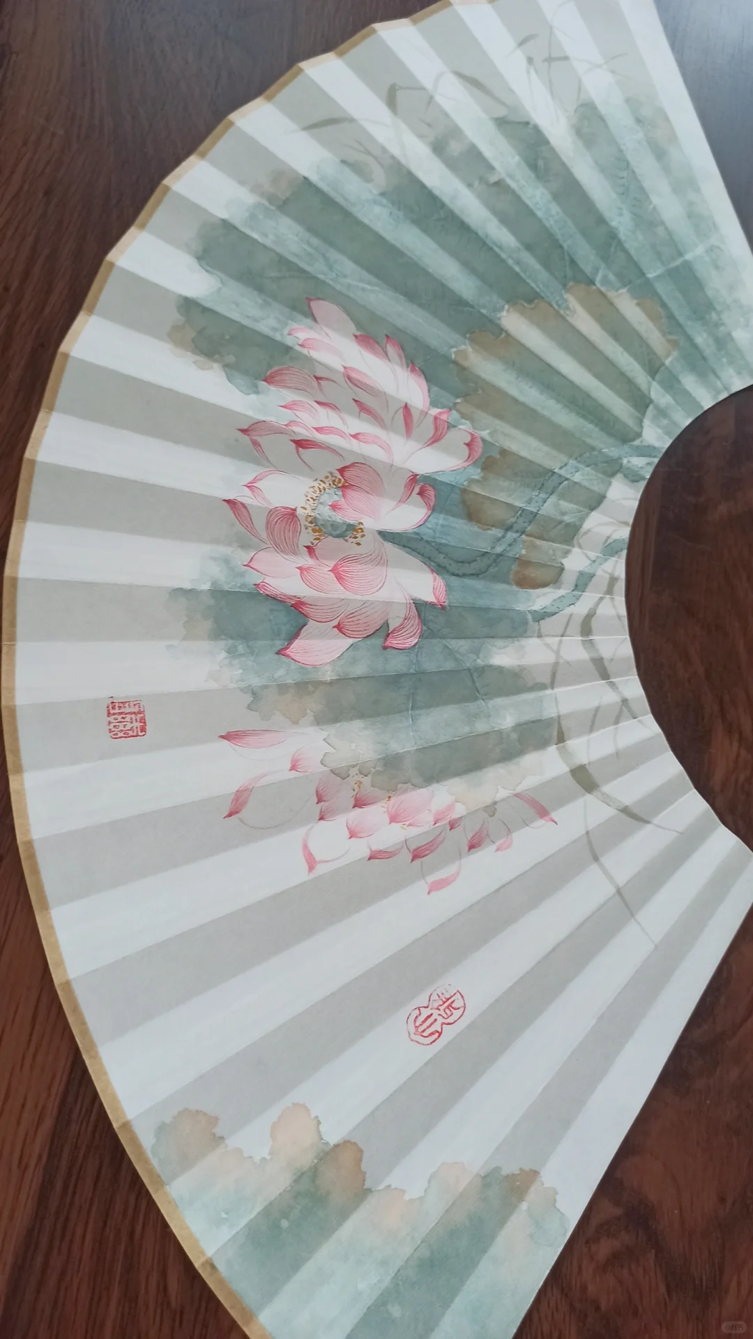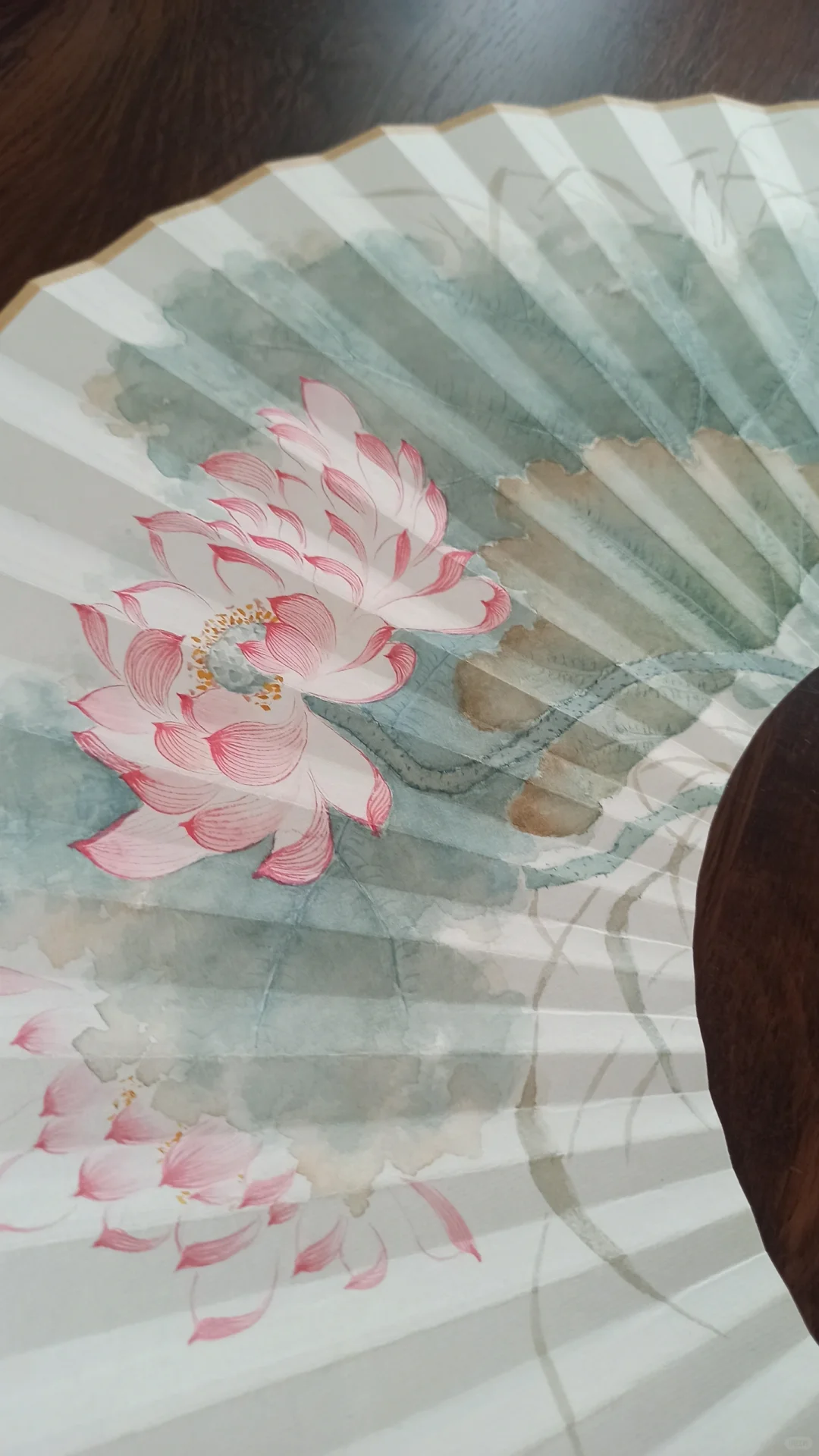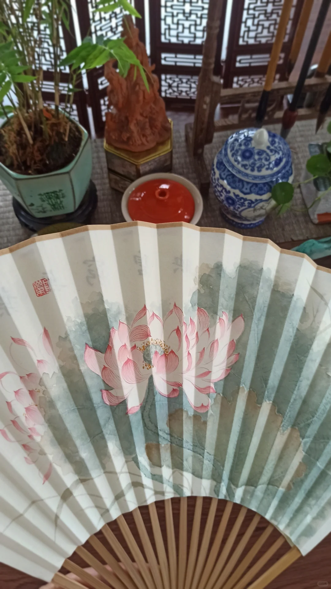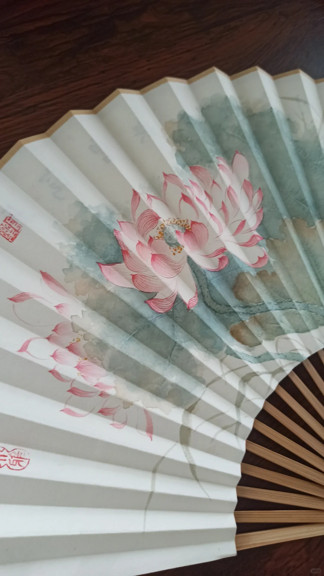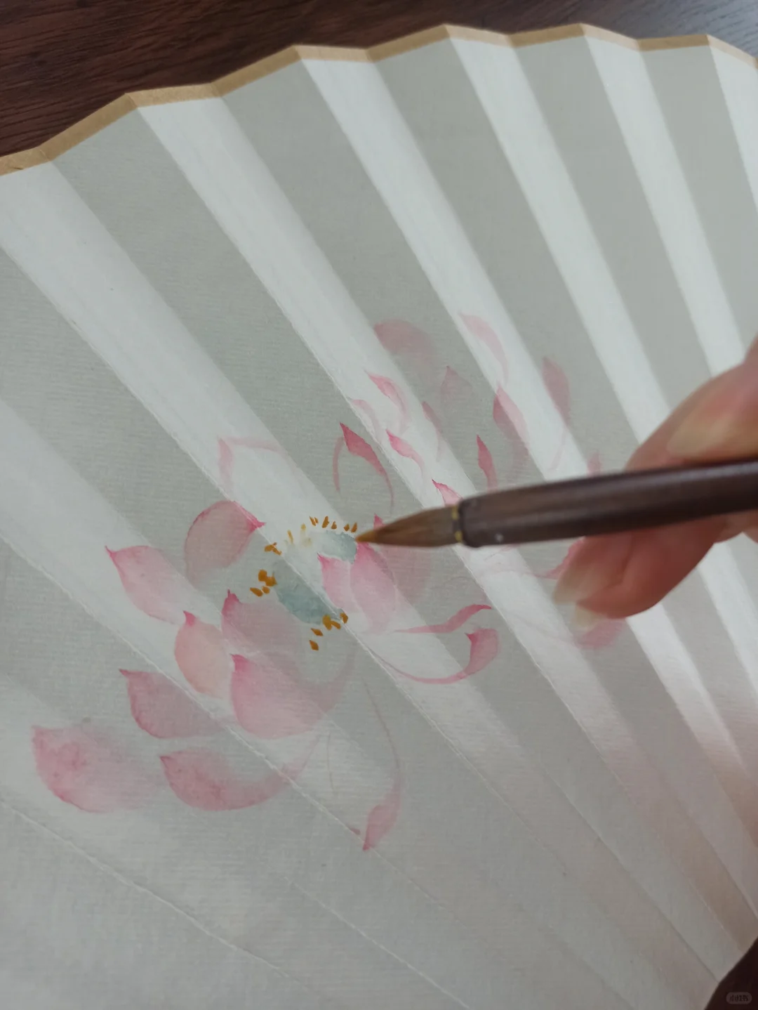 夏天怎么少的了一把荷花扇子呢 荷花入扇应该是非常常见的题材了 仙气飘飘的荷花应该没有人不爱吧