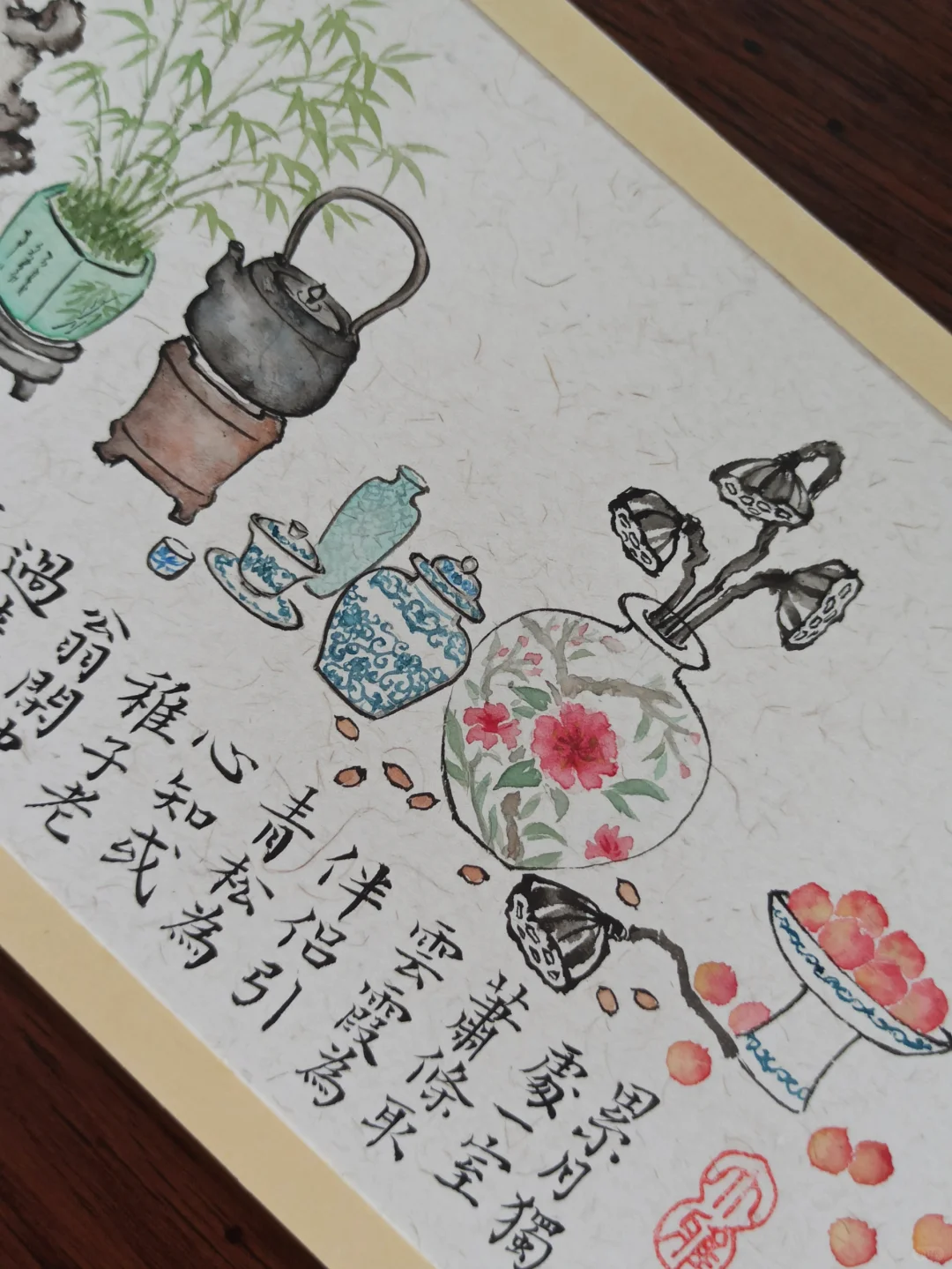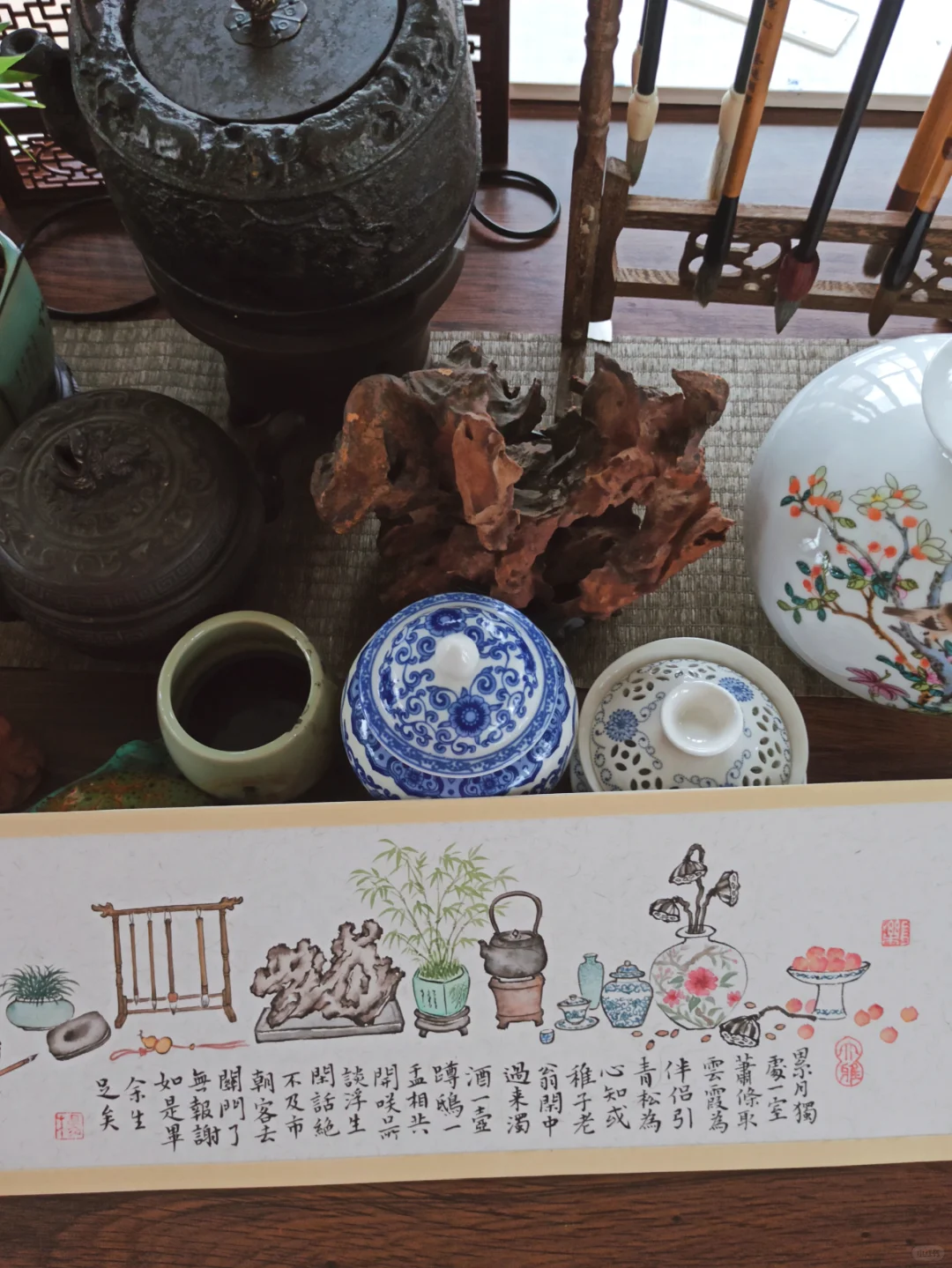 听说我桌子上这些乱七八糟的东西 你们都挺喜欢的 于是今天又请它们当模特了 今天的组合有人喜欢吗? 附文 累月独处,一室萧条 取云霞为伴侣,引青松为心知 或稚子老翁,闲中来过 浊酒一壶,蹲鸱一盂 相共开笑口,所谈浮生闲话,绝不及市朝 客去关门,了无报谢,如是毕余生足矣