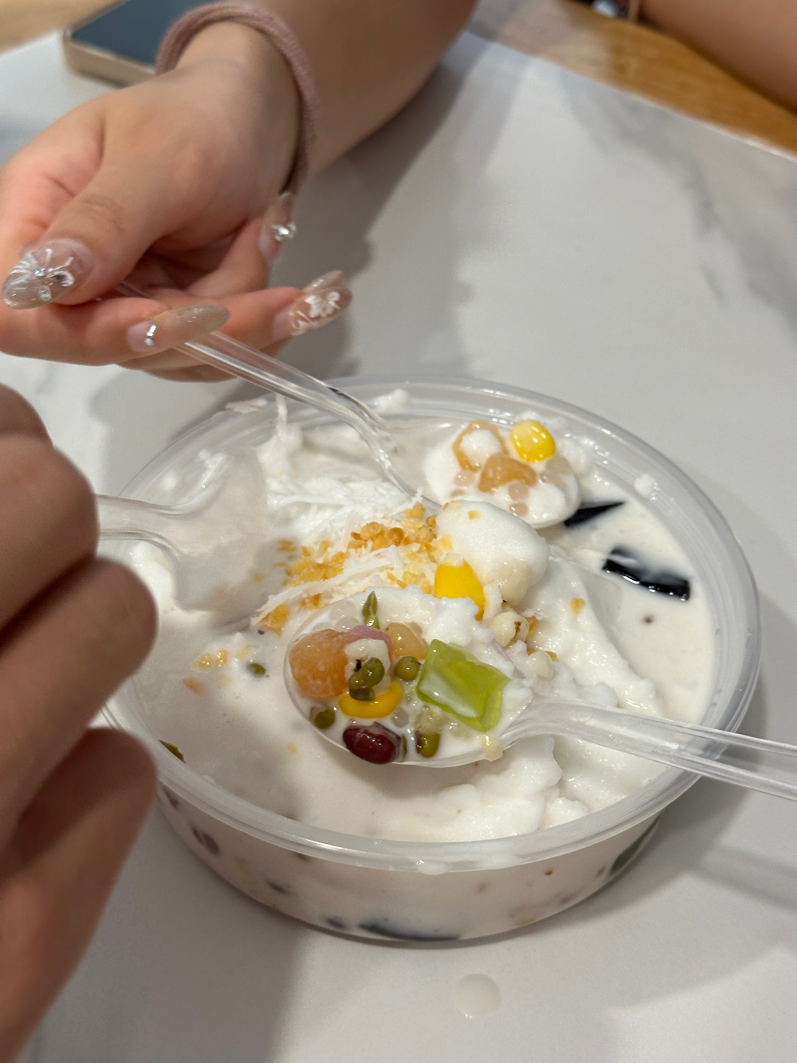 今天遇到了心软的清补凉神可能是我们四个唧唧呱呱地带动了老板的情绪她一直跟我们