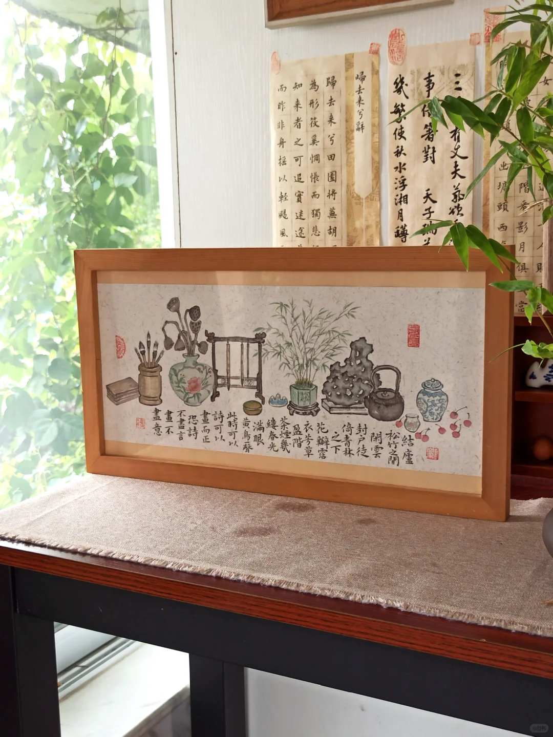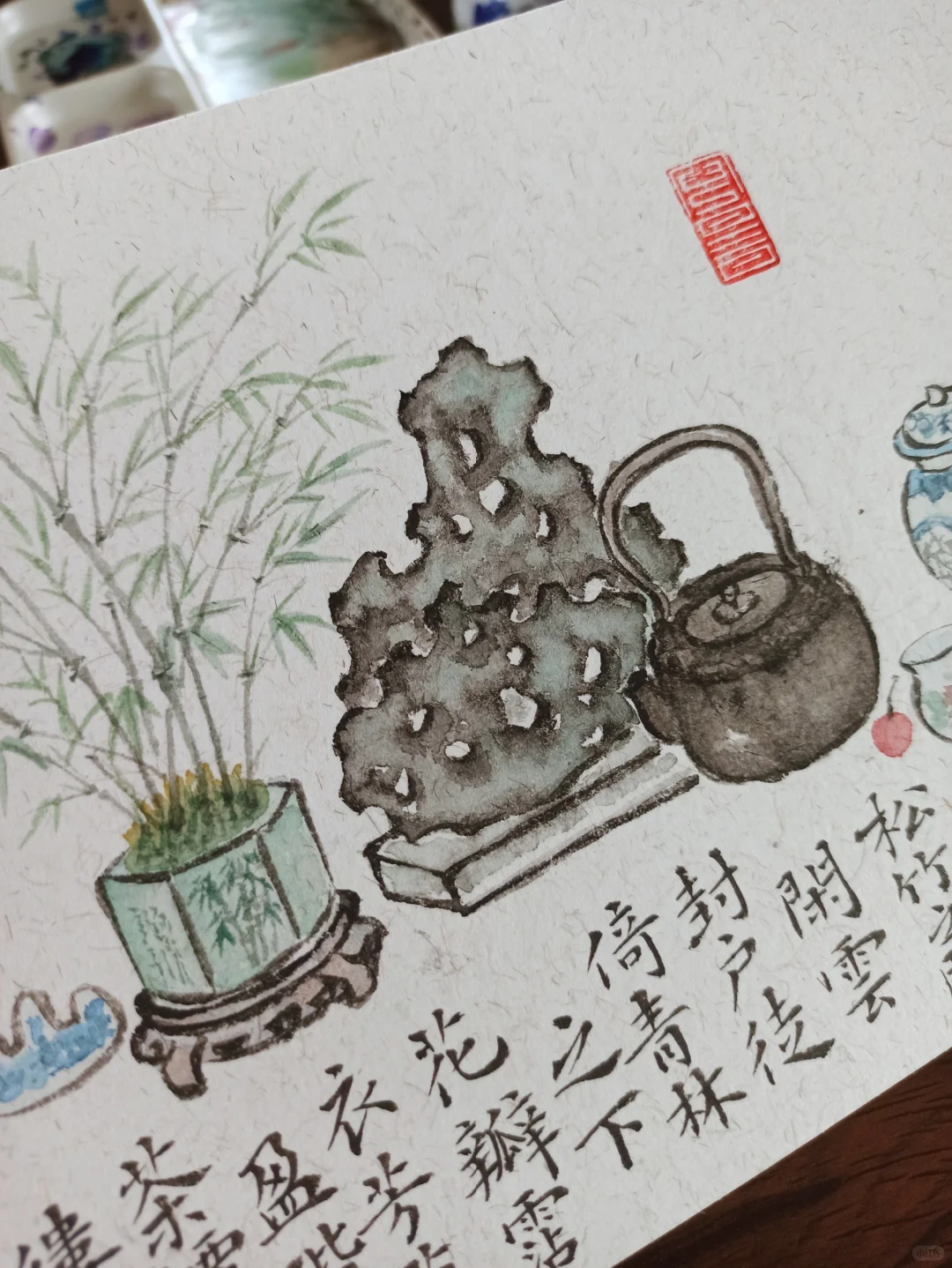 随便选几样桌上的文房画下来 再配上一段文字 一副小画就完成了 万物皆可入丹青