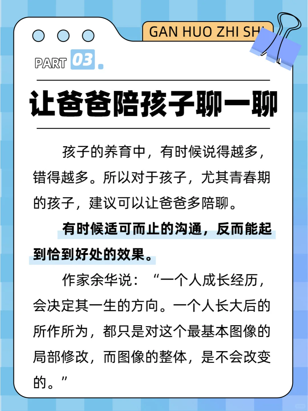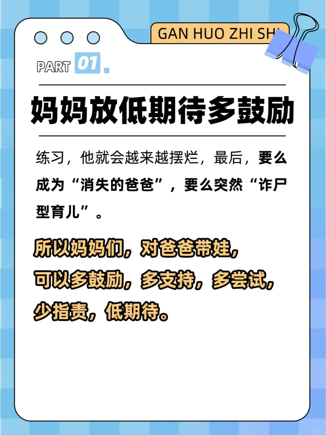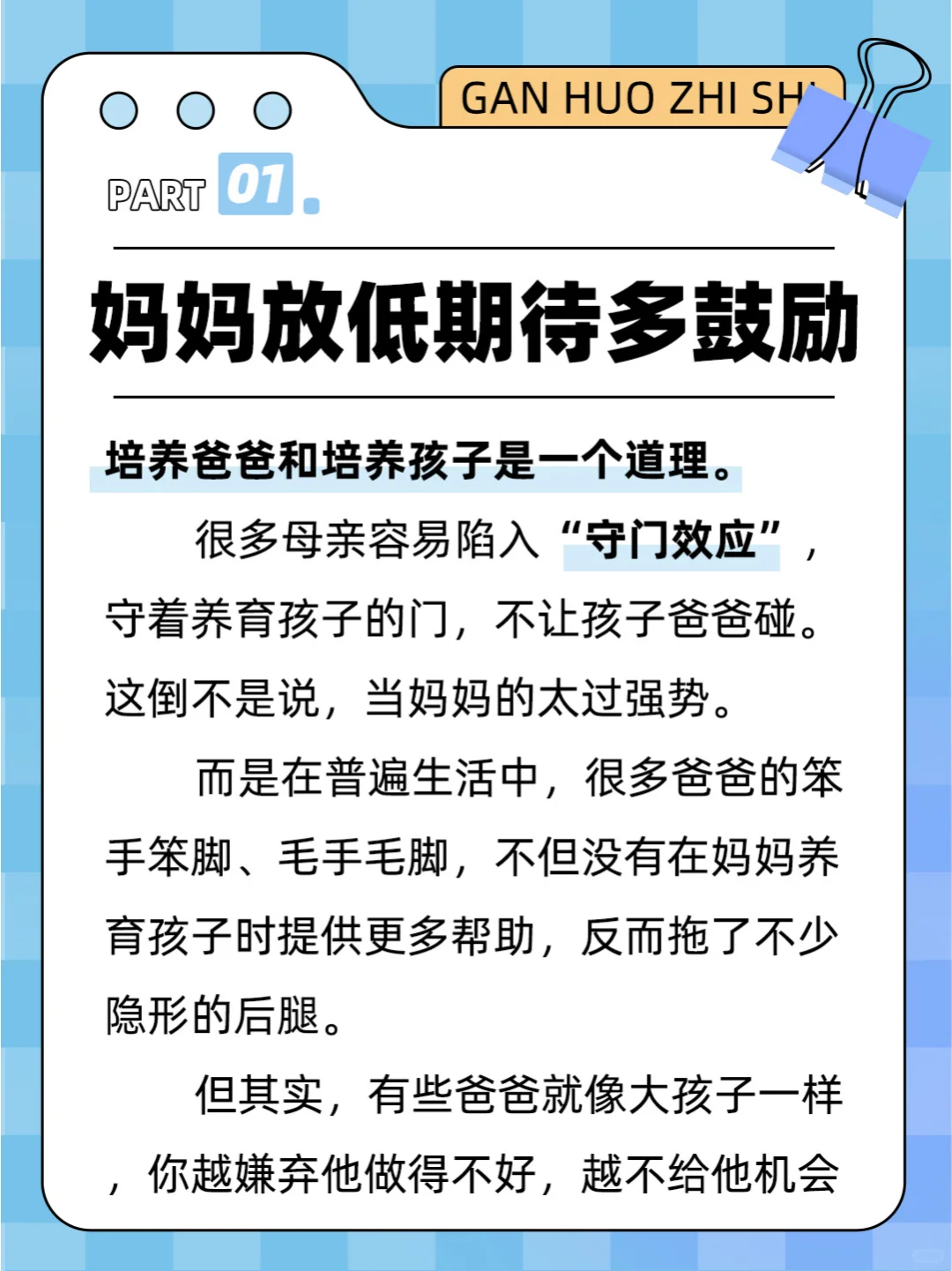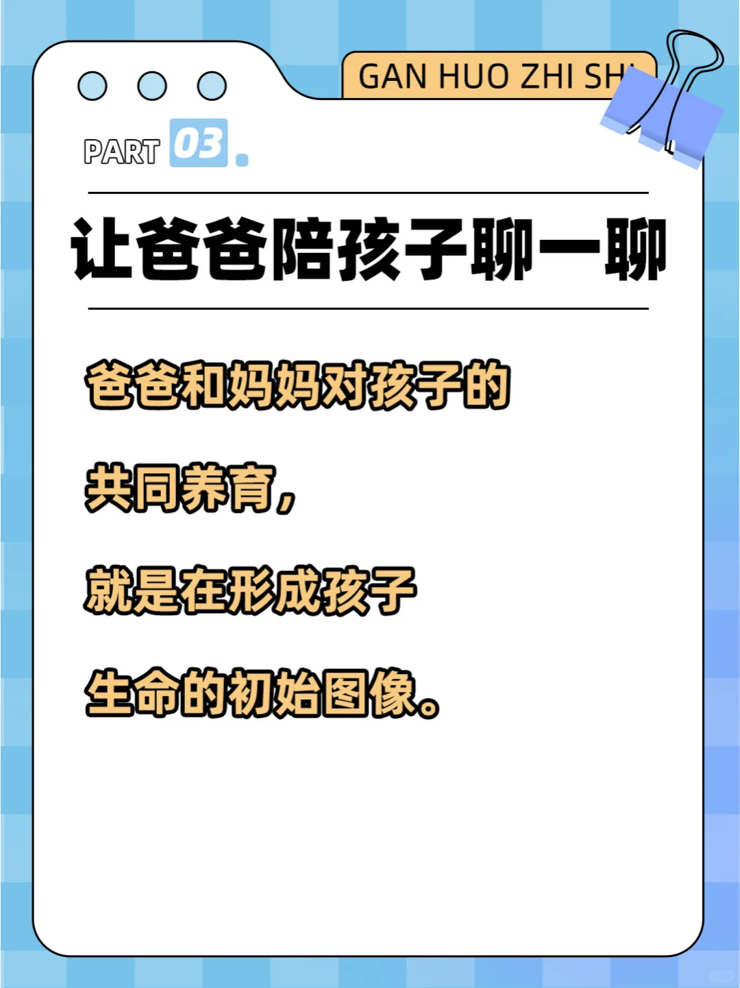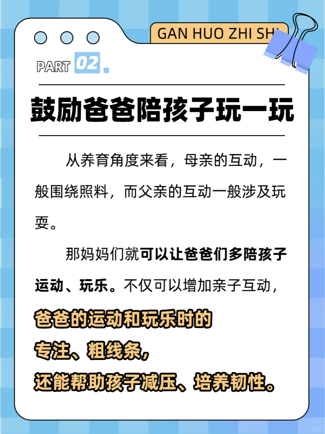 1️⃣妈妈放低期待多鼓励👩👧👦💕 2️⃣鼓励爸爸陪孩子玩一玩👨👧👦🎮 3️⃣让爸爸陪孩子聊一聊👨👧👦💬