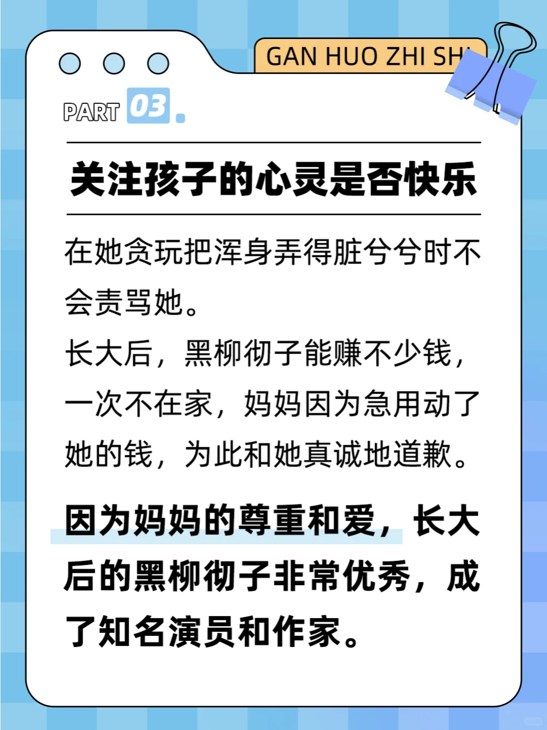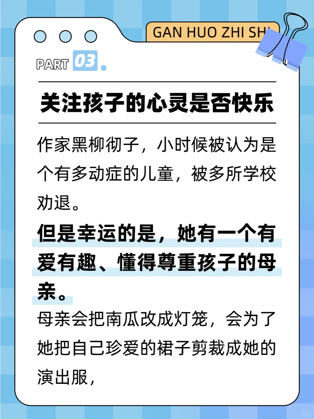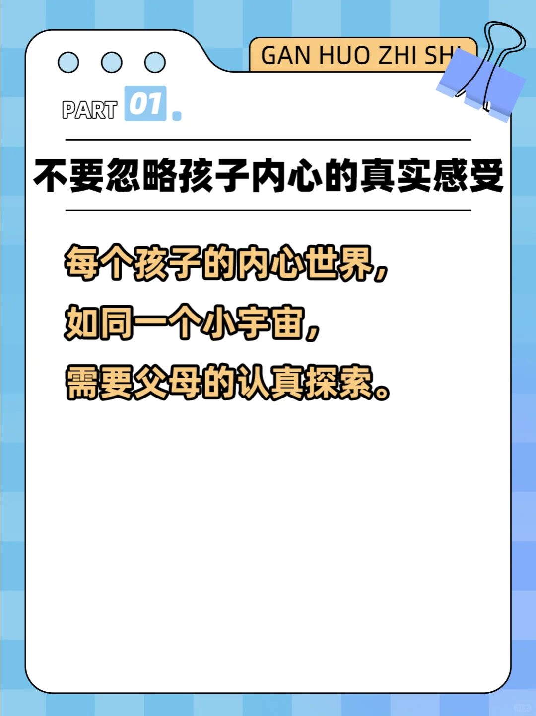 1️⃣不要忽略孩子内心的真实感受💓 2️⃣每周留出和孩子独处的时间⏰ 3️⃣尊重孩子,关注孩子的心灵是否快乐😊