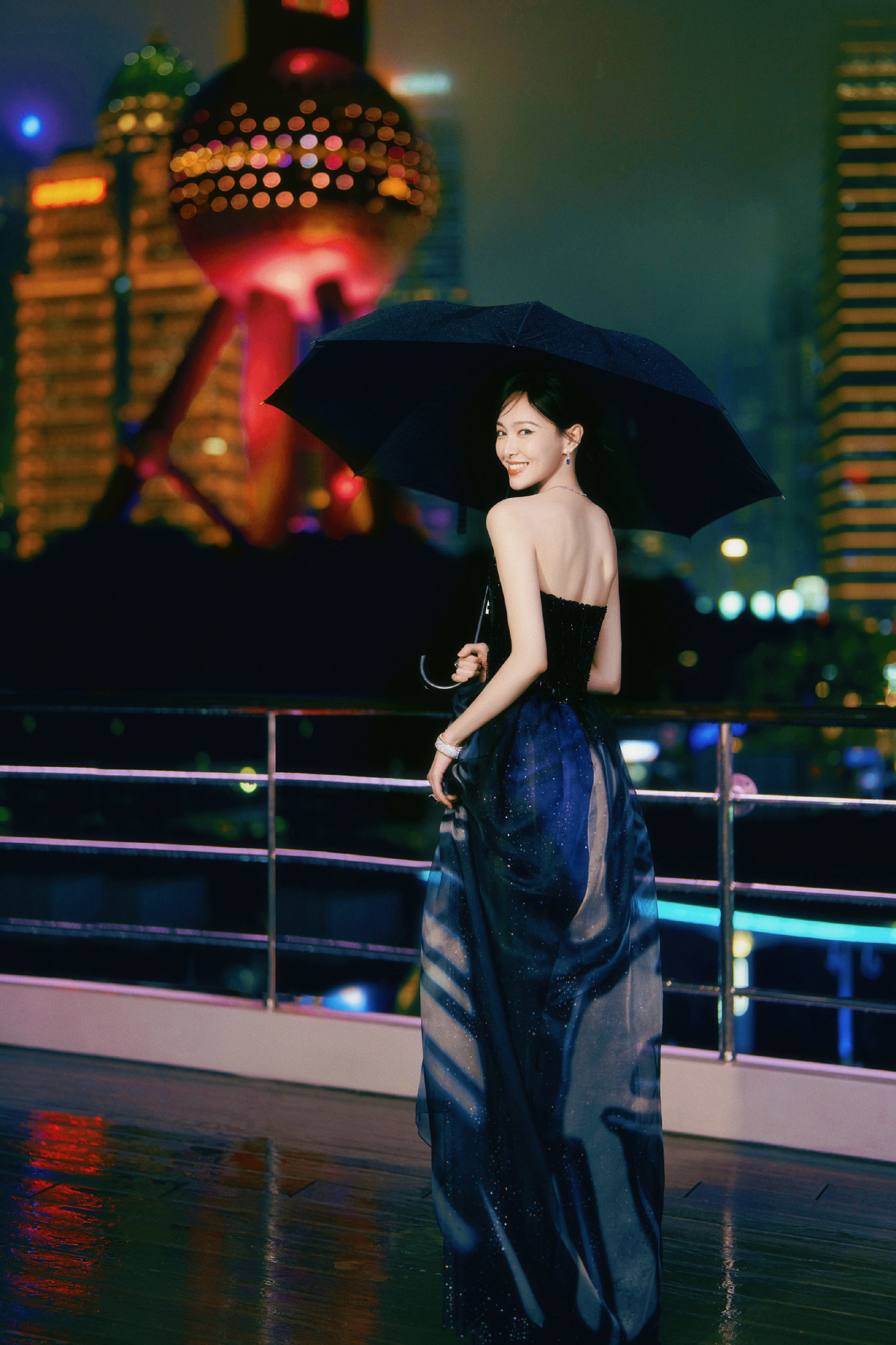 #唐嫣蓝宝石高珠##唐嫣撑伞回眸#唐嫣气质真好