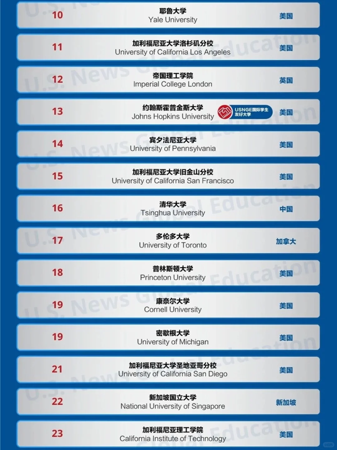最新的全球最佳大学排名中,美国老牌名校仍然霸榜TOP10。