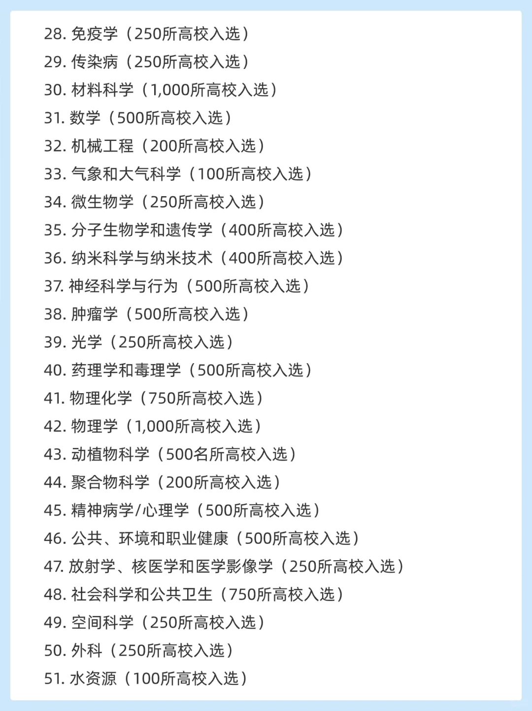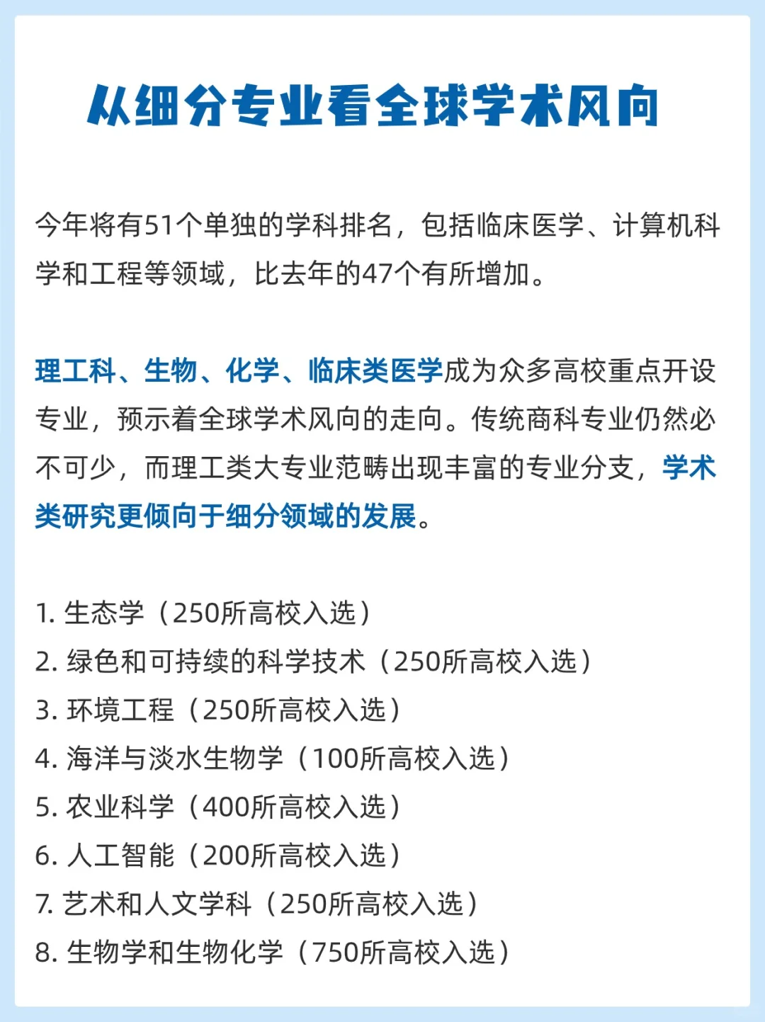 理工科、生物、化学、临床类医学成为众多高校重点开设专业,预示着全球学术风向的走向。