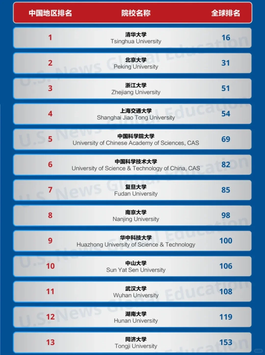 相较往年的U.S. News 全球最佳院校排名,国内高校的入榜数量显著增加,逐步体现中国大学对于学术质量的重视,以及在全球范围内学术表现的提升。