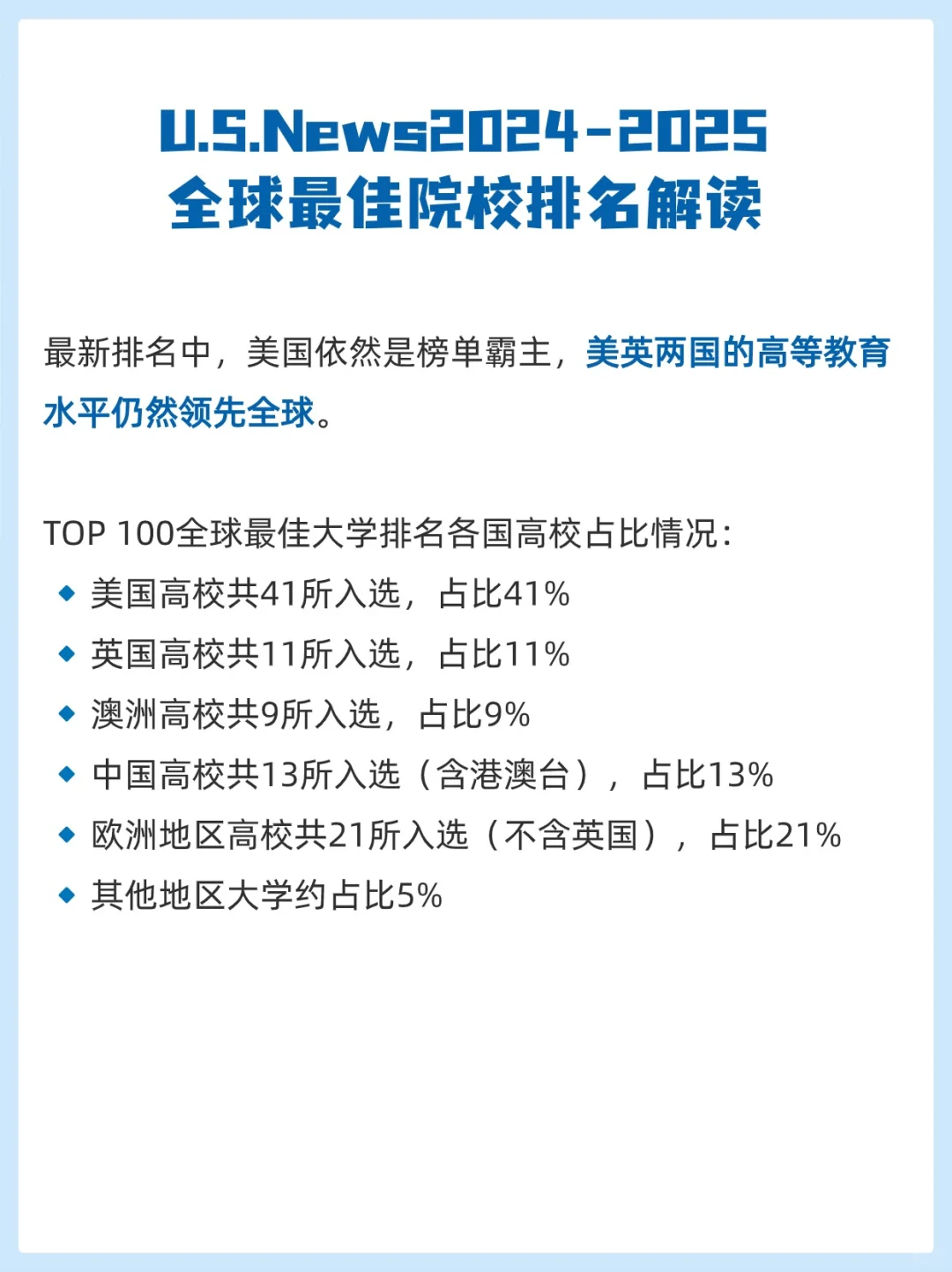 2024年6月25日U.S. News & World Report时隔两年发布了2024-2025年度全球最佳院校排名。