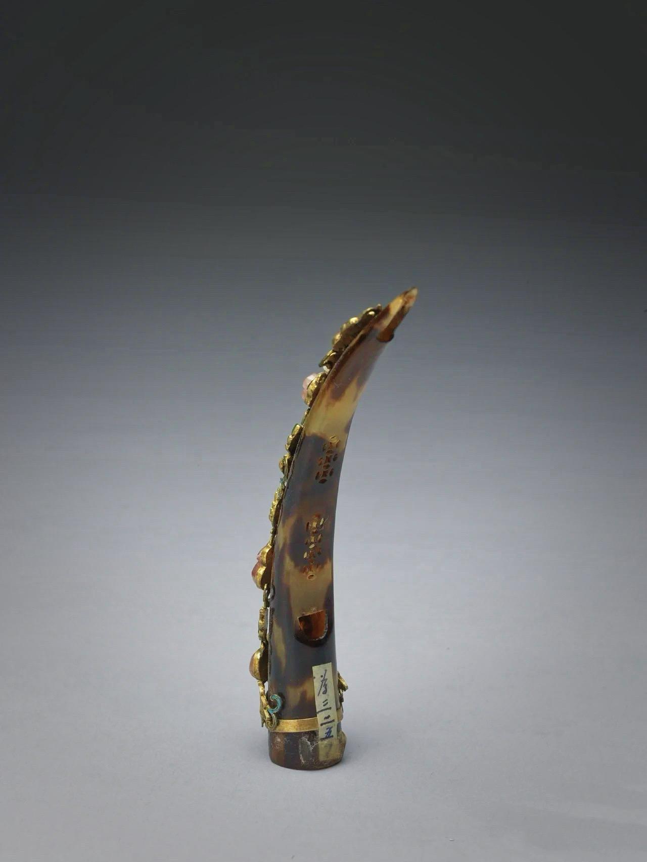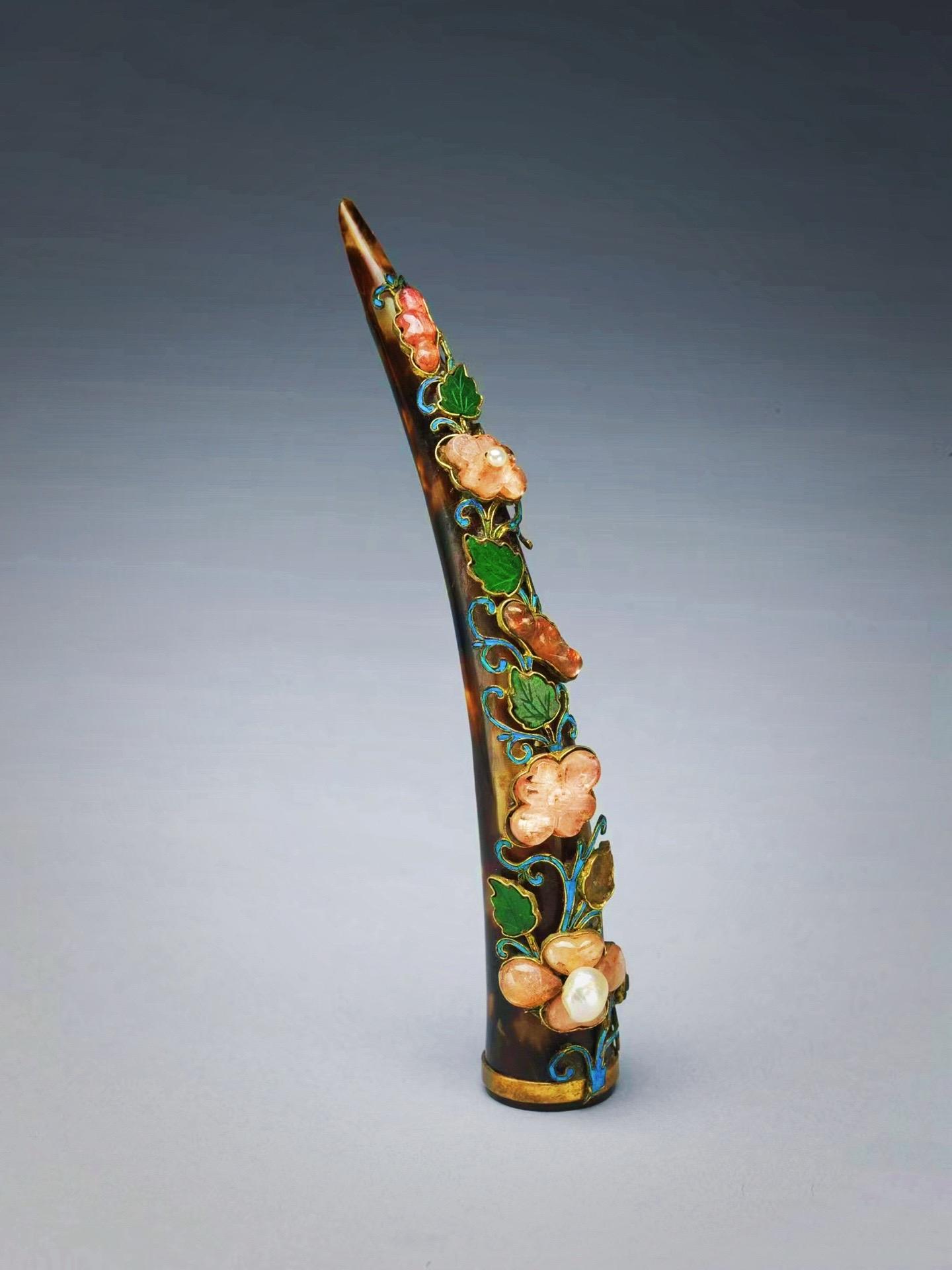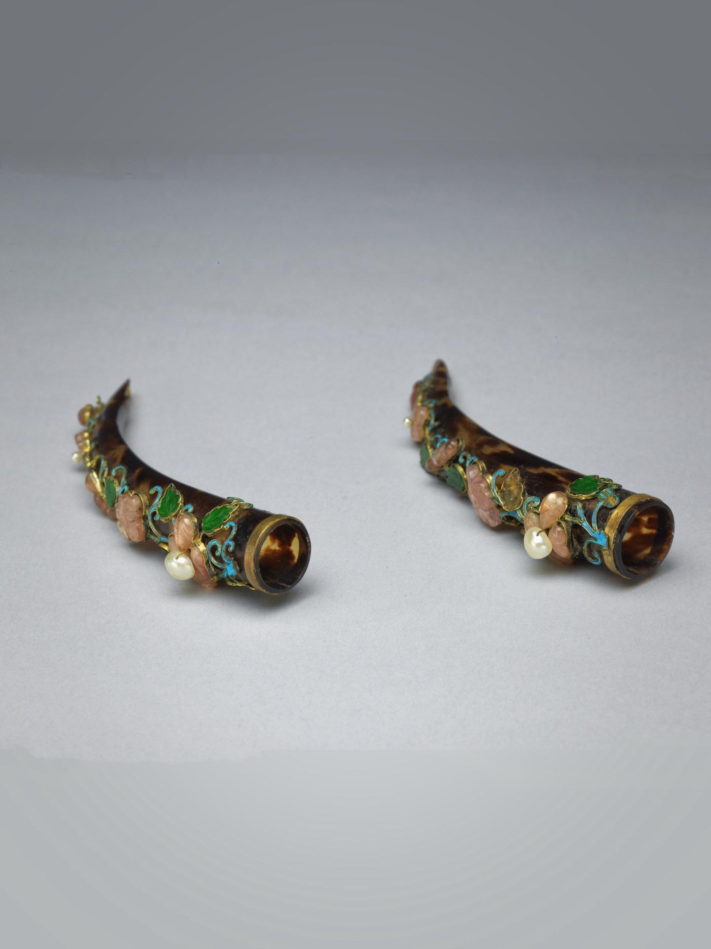 清代· 玳瑁嵌珠宝花卉护甲。纤纤软玉削春葱,长在香罗翠袖中——唐·赵鸾鸾《纤指》