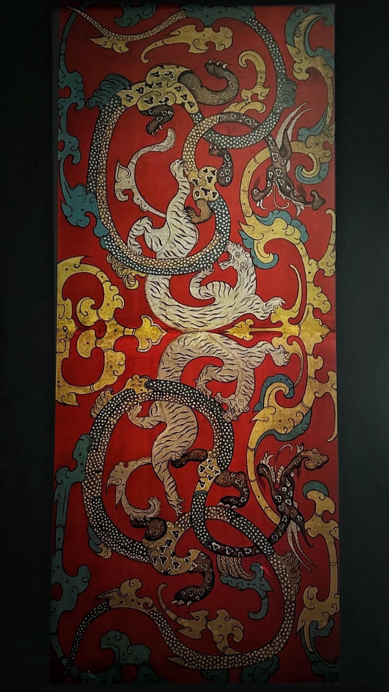 构图复杂且精美,上有龙和凤