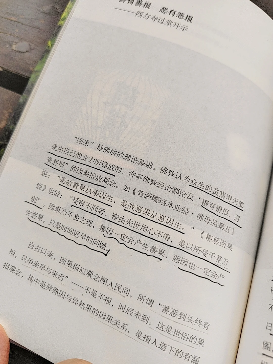 你的贫富寿夭都是由自己的业力所造成的,一切皆因果所定。善果从善因生,恶果从恶因生,常种善因,常做善事,故自然不招恶果,因而自在安乐。