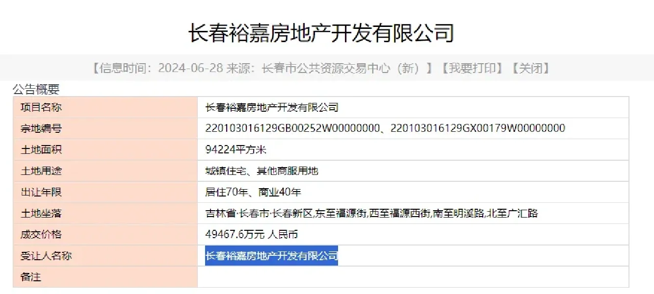 这两宗地块均由长春裕嘉房地产开发有限公司以底价摘得,背景么,和龙翔是有关系的~