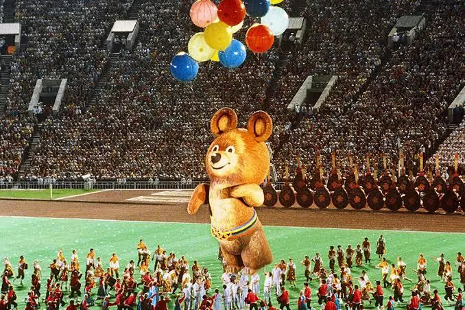 在闭幕式上,由于朋友们好多都没有来,吉祥物小熊米莎在忧伤的《再见,莫斯科》音乐中流下了眼泪,这也成为奥运会历史上的经典一幕。