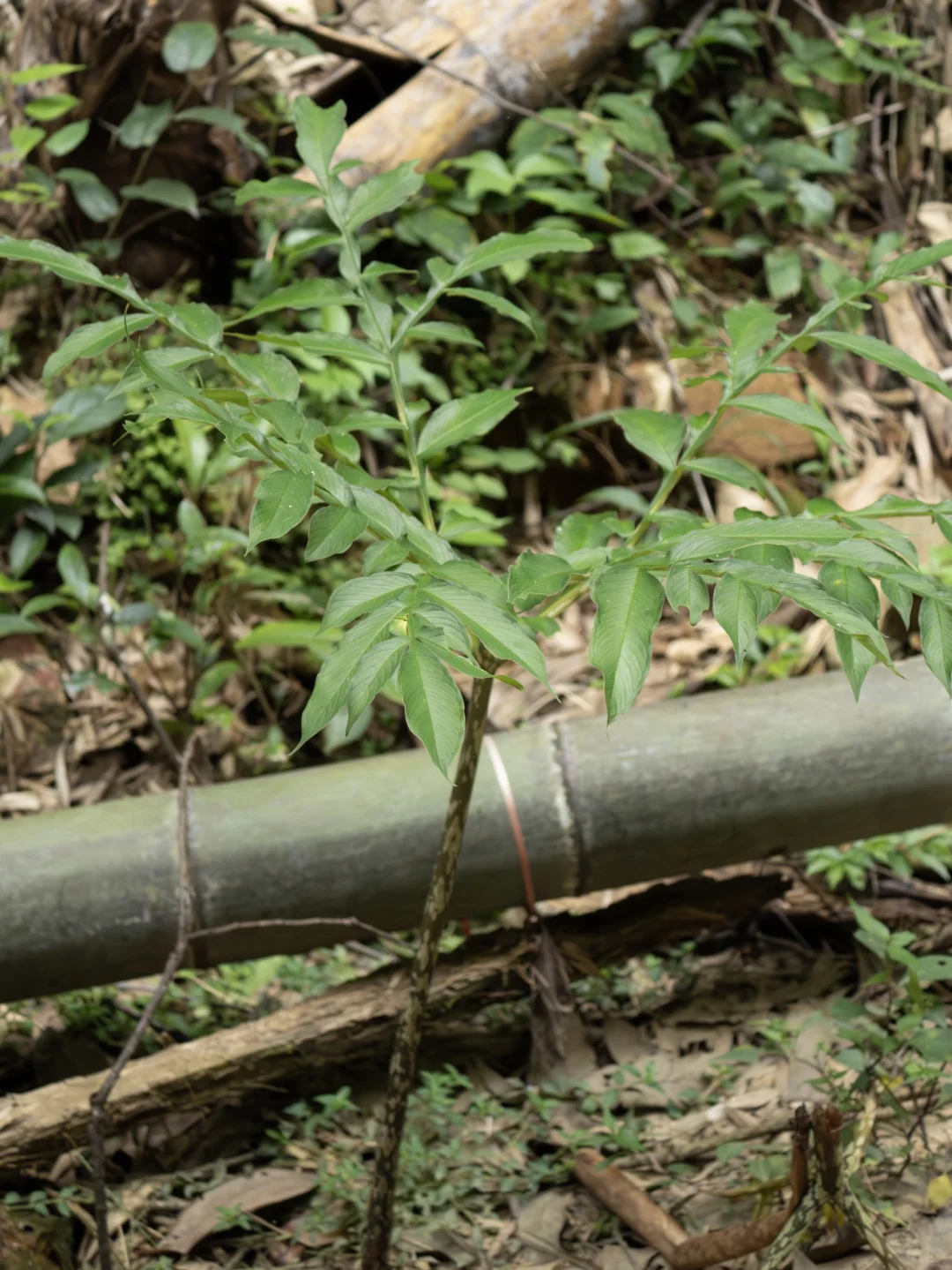 东亚魔芋喜欢在田野和林荫下生长,尤其是潮湿的环境。它的茎秆上有类似蛇皮的花纹,非常独特。如果你在花期遇见它,可能会被它吓一跳,因为它的花和茎秆看起来就像一条剑拔弩张的眼镜蛇。东亚魔芋的叶片呈三裂状,每个裂片再分成两叉,每叉上有羽状小裂片,像一把绿色的伞,为它增添了几分神秘和美丽。