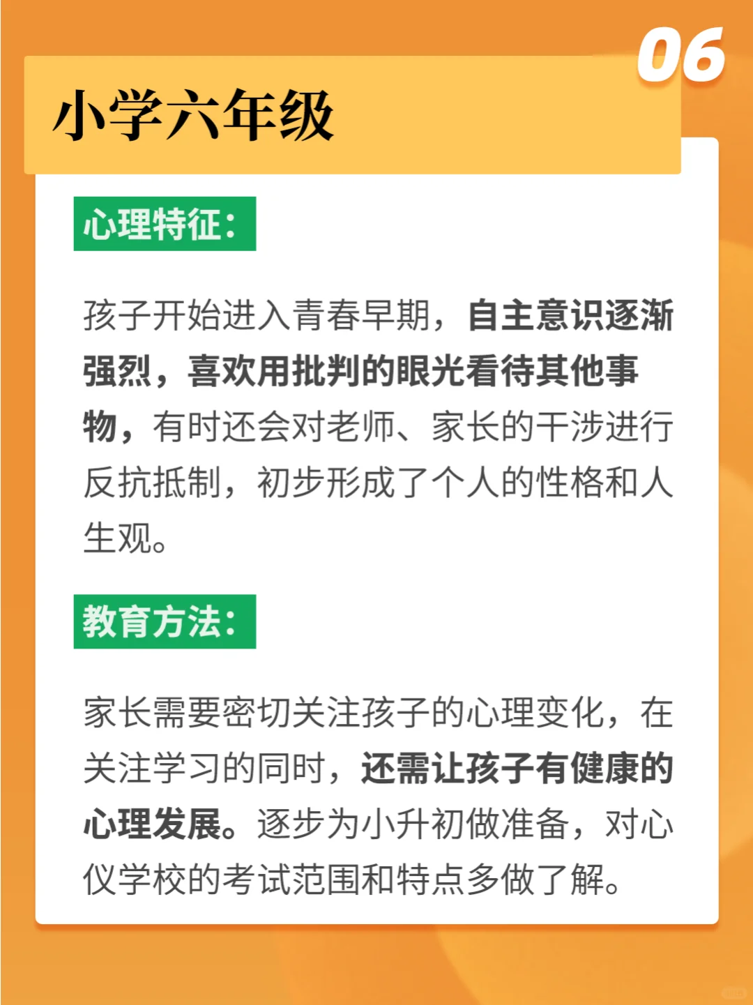 家长需要密切关注孩子的心理变化🔍,在关注学习的同时,还需让孩子有健康的心理发展💗。逐步为小升初做准备,对心仪学校的考试范围和特点多做了解🏫。