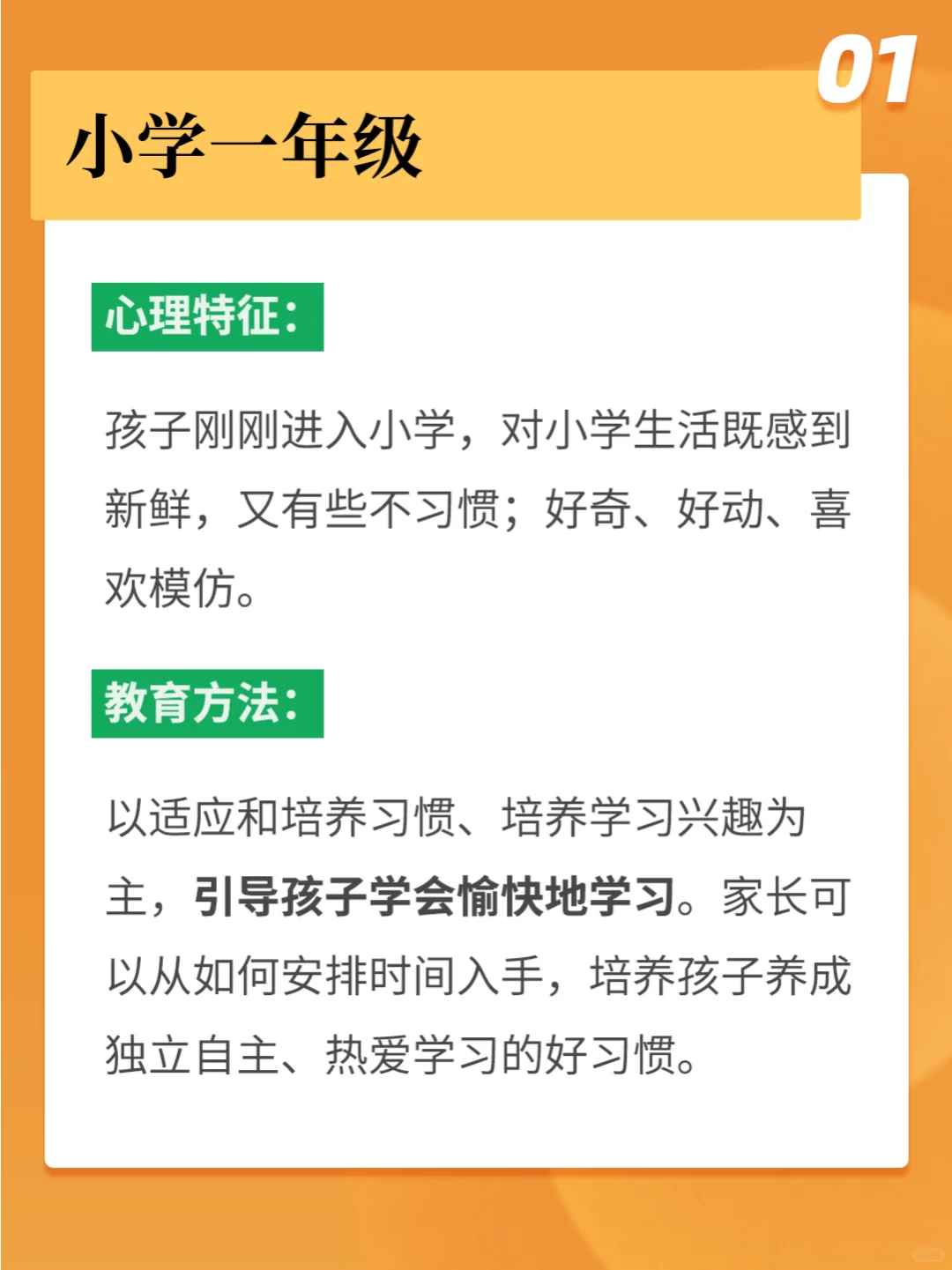 以适应和培养习惯、培养学习兴趣为主,引导孩子学会愉快地学习📚。家长可以从如何安排时间⏰入手,培养孩子养成独立自主🙋♂️、热爱学习的好习惯📖。