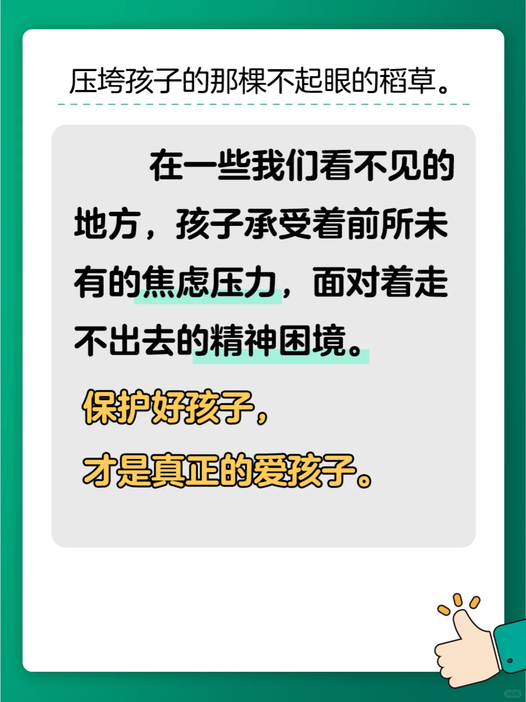 但过度的焦虑和压力,一定会是压垮孩子的那棵不起眼的稻草🌾。
