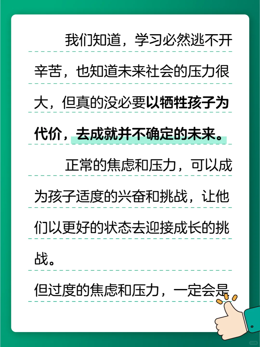 我们知道,学习必然逃不开辛苦📚,也知道未来社会的压力很大🏙️,但真的没必要以牺牲孩子为代价,去成就并不确定的未来🌈。