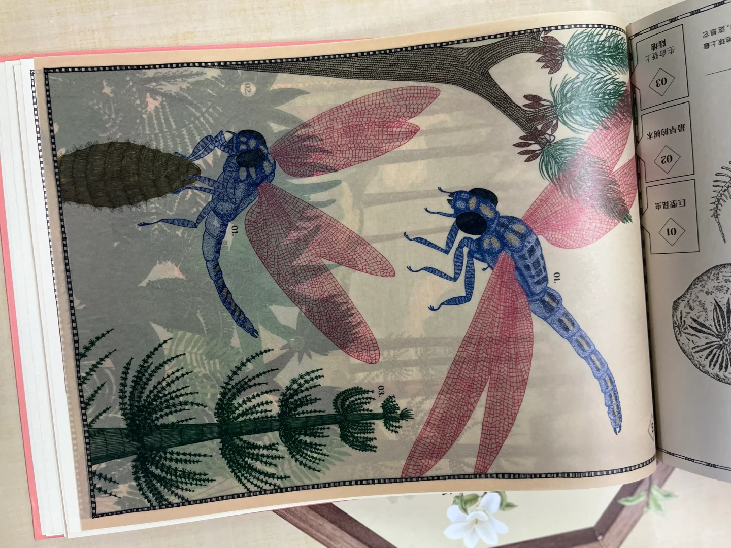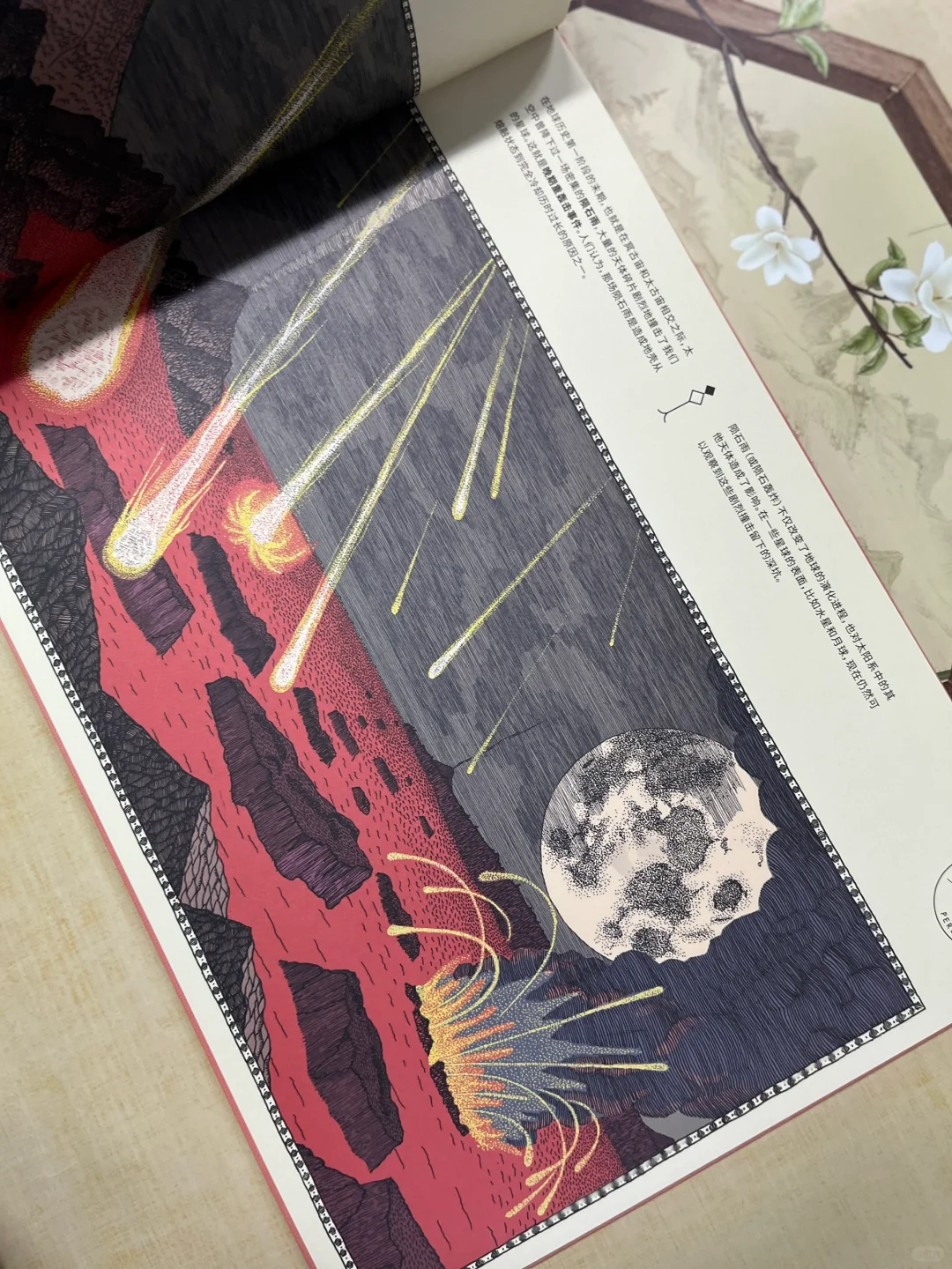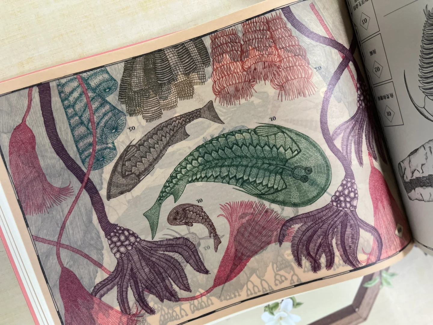 这本《地球上遗失的风景》以翻折卡片展示化石与复原生物对比图;以透明质幻灯片3D式立体呈现远古自然风貌;以收藏级手绘图谱+透明纸模拟场景,生动还原46亿年的地球演化史。