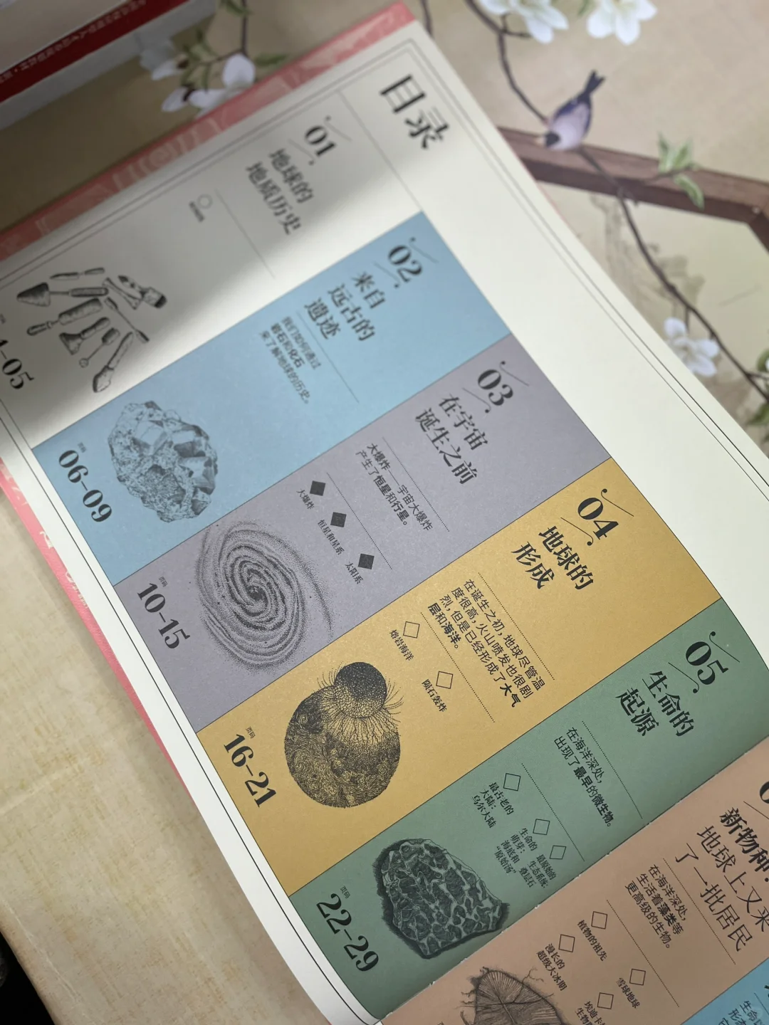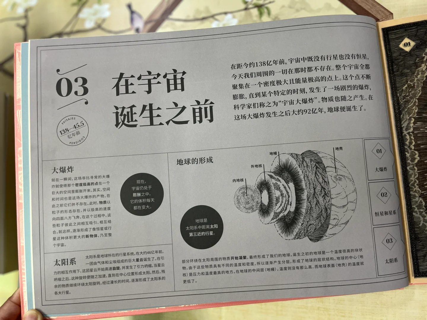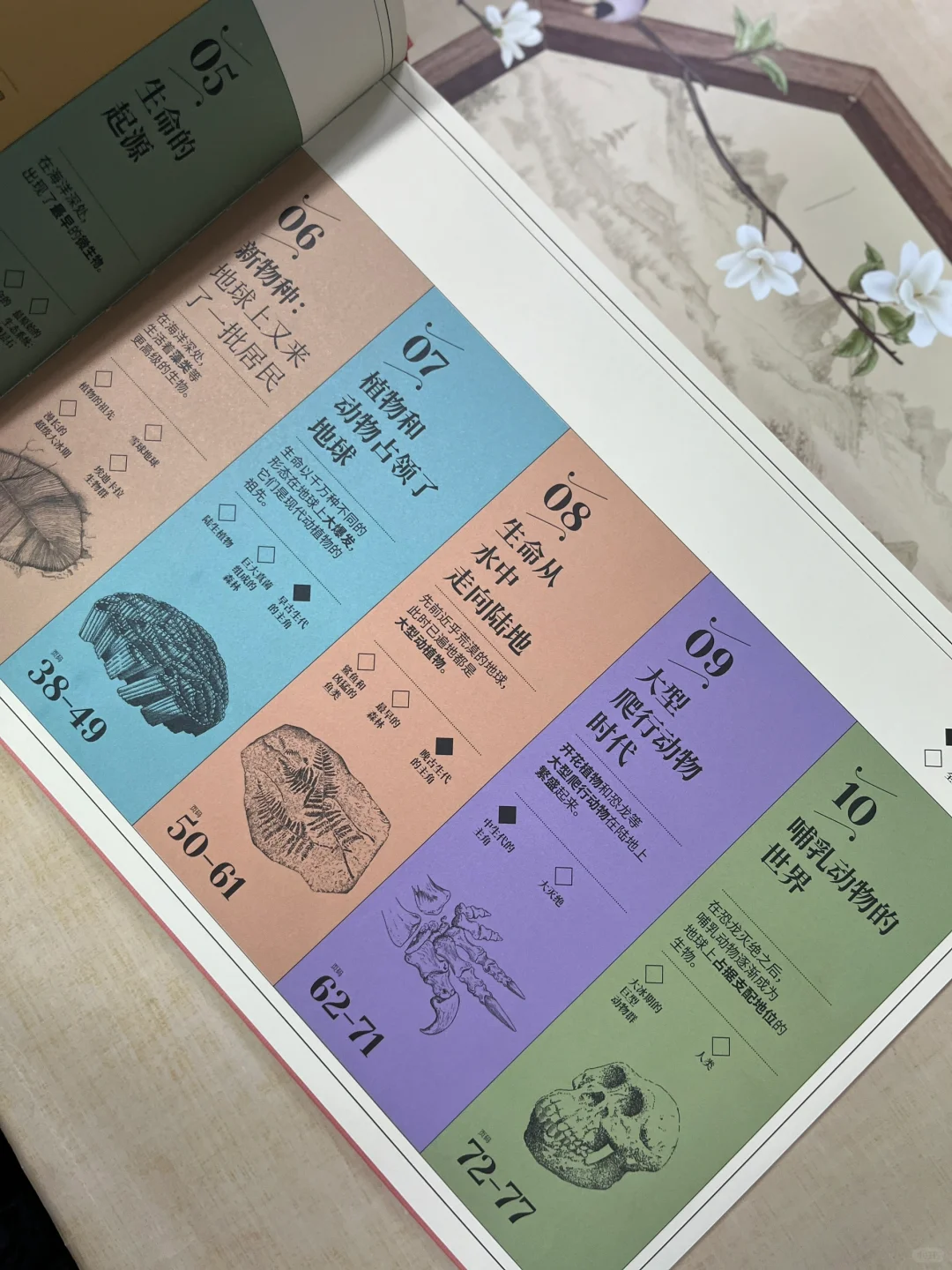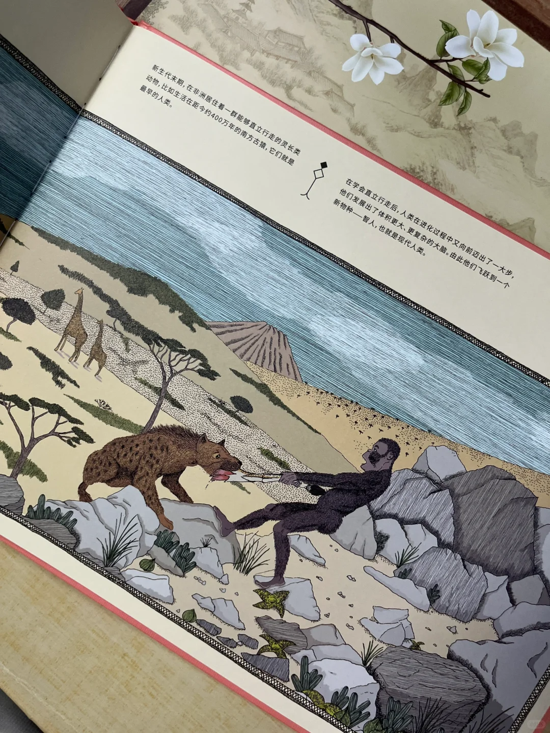 这本《地球上遗失的风景》以翻折卡片展示化石与复原生物对比图;以透明质幻灯片3D式立体呈现远古自然风貌;以收藏级手绘图谱+透明纸模拟场景,生动还原46亿年的地球演化史。
