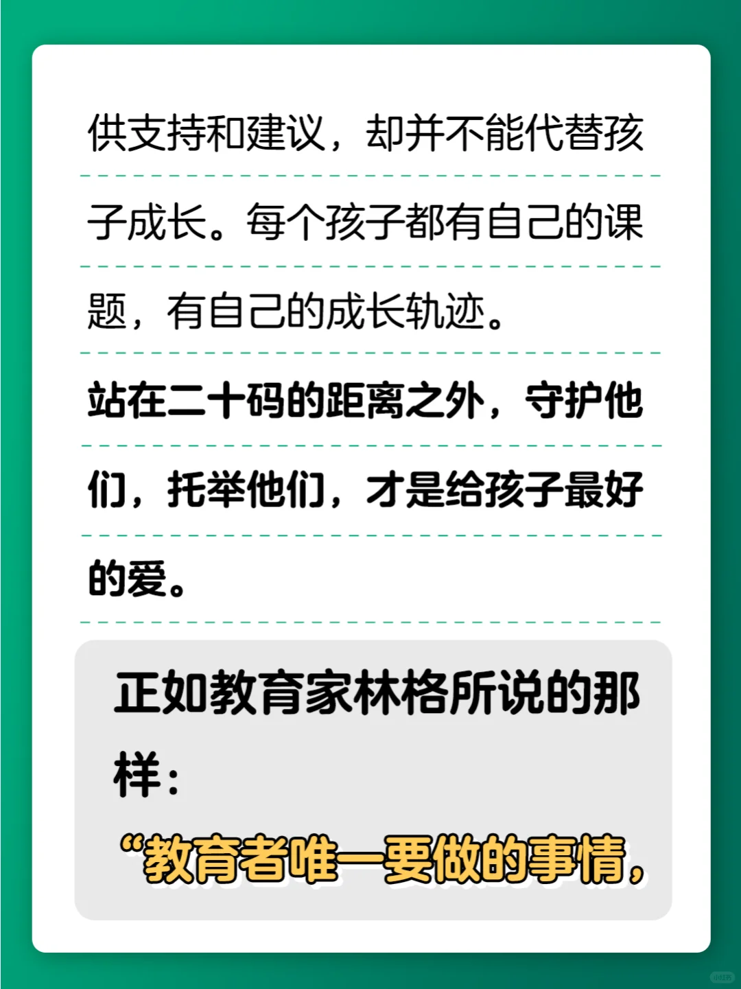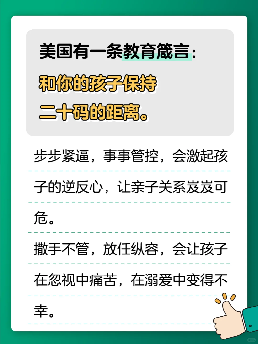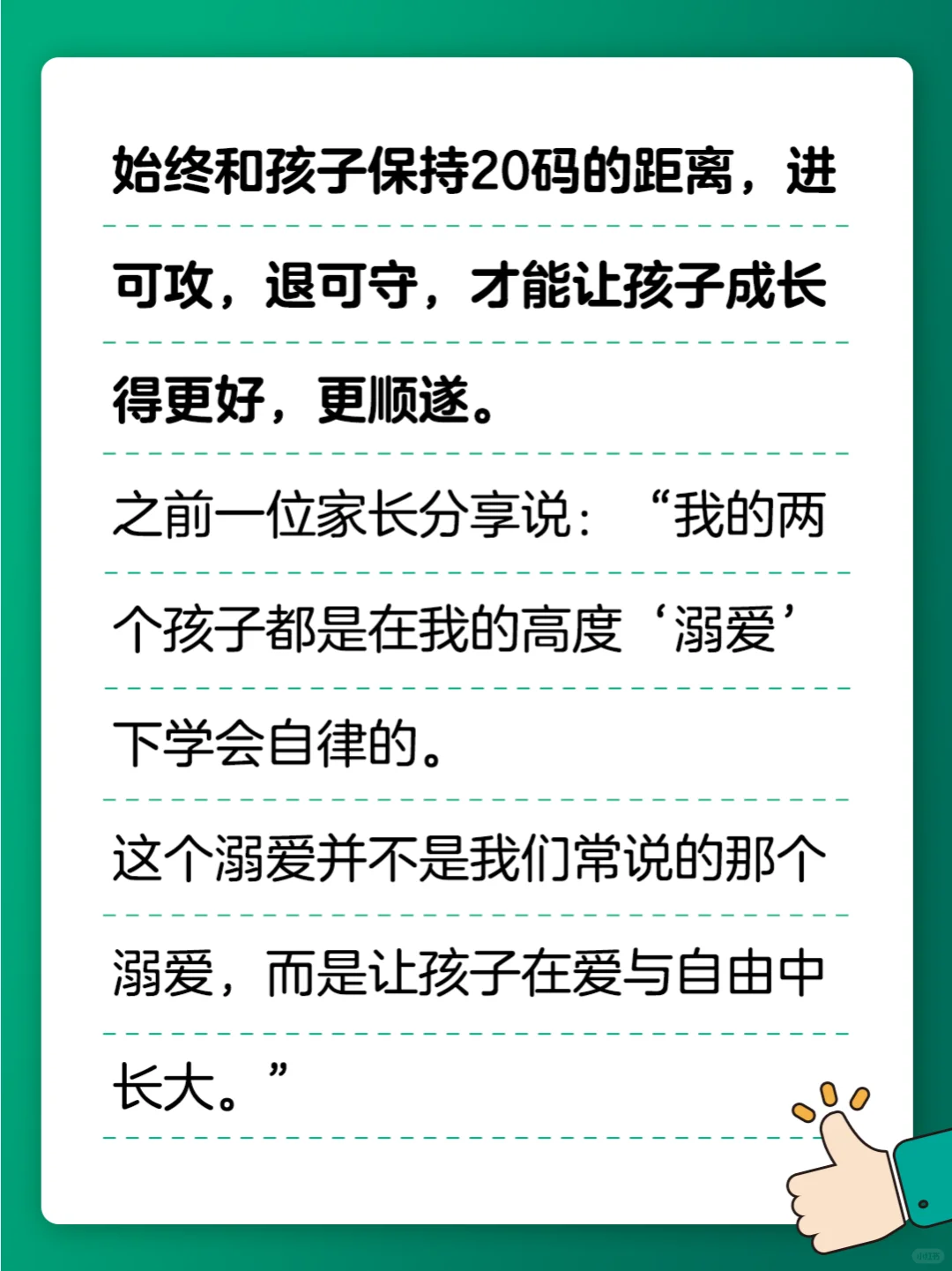 始终和孩子保持20码的距离,进可攻,退可守,才能让孩子成长得更好,更顺遂。🌱