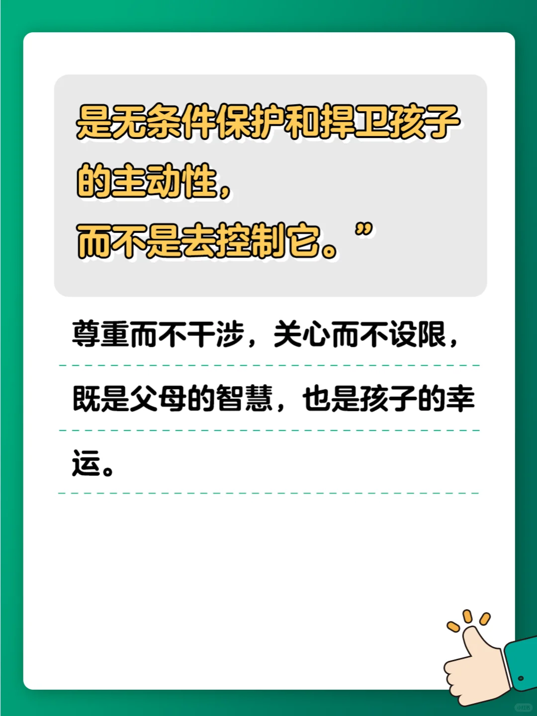 正如教育家林格所说的那样:“教育者唯一要做的事情,是无条件保护和捍卫孩子的主动性,而不是去控制它。”🛡️