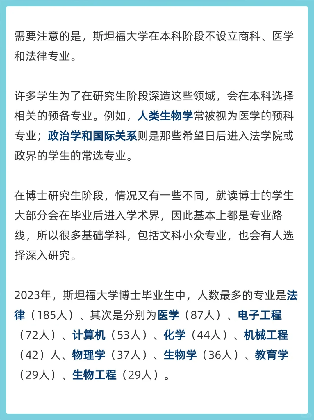 需要注意的是,斯坦福大学在本科阶段不设立商科、医学和法律专业。