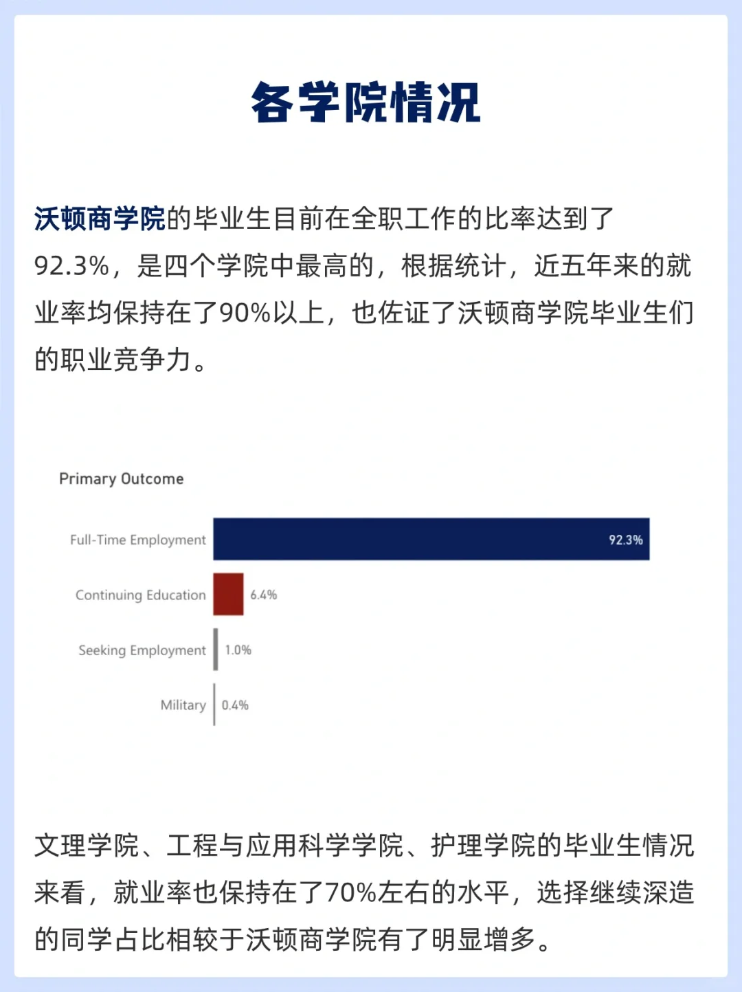 特别是沃顿商学院的毕业生,他们在全球范围内都享有极高的声誉,深受各大企业的青睐。宾大沃顿商学院的毕业生就业率一直保持在90%以上。