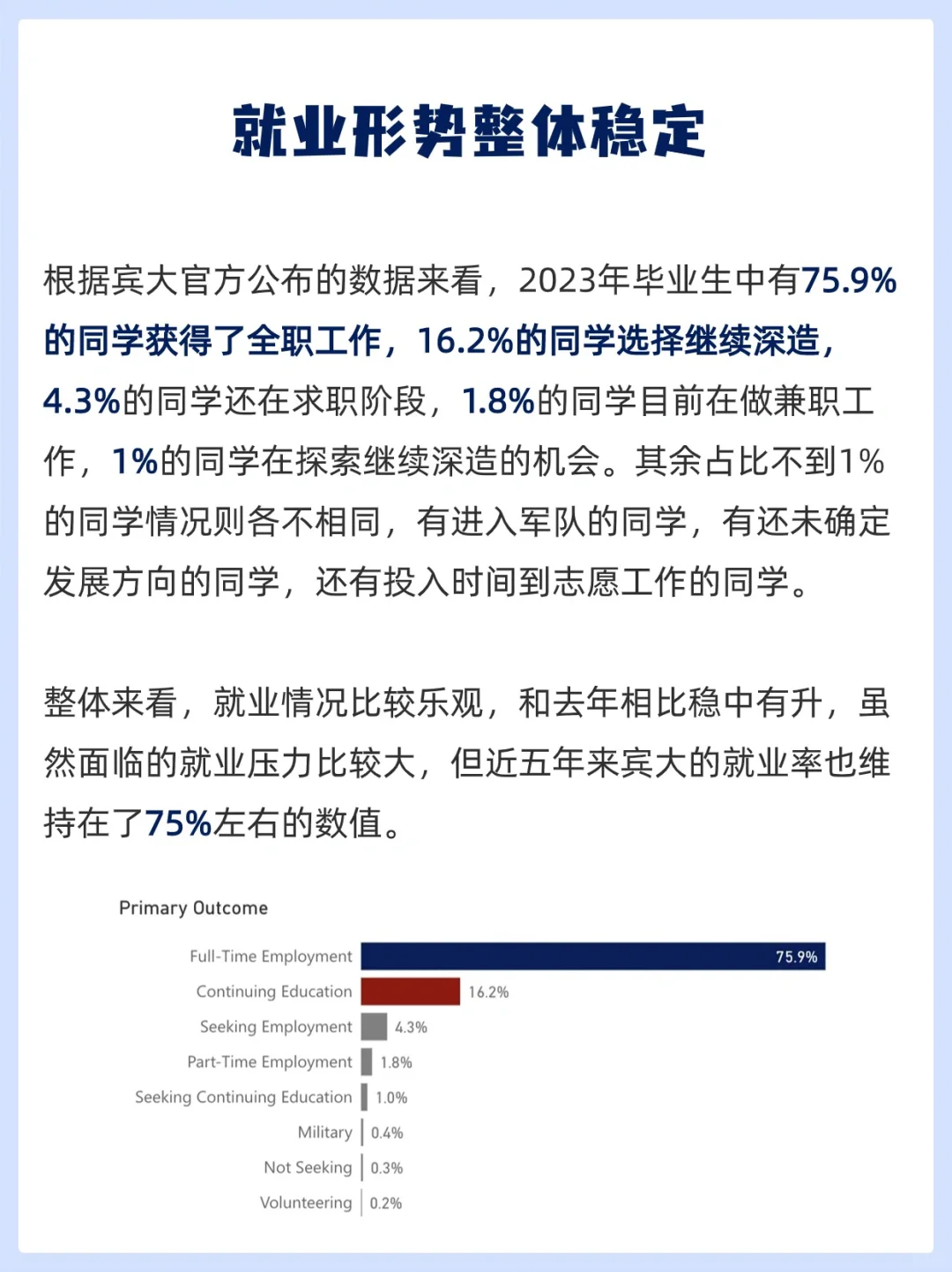宾大就业服务中心Career Service每年都会对即将毕业的学生进行调研,了解毕业生们的职业规划和未来发展道路。究竟藤校学子的就业前景和含金量到底如何,或许可以从宾大官方披露的就业报告中获得答案。