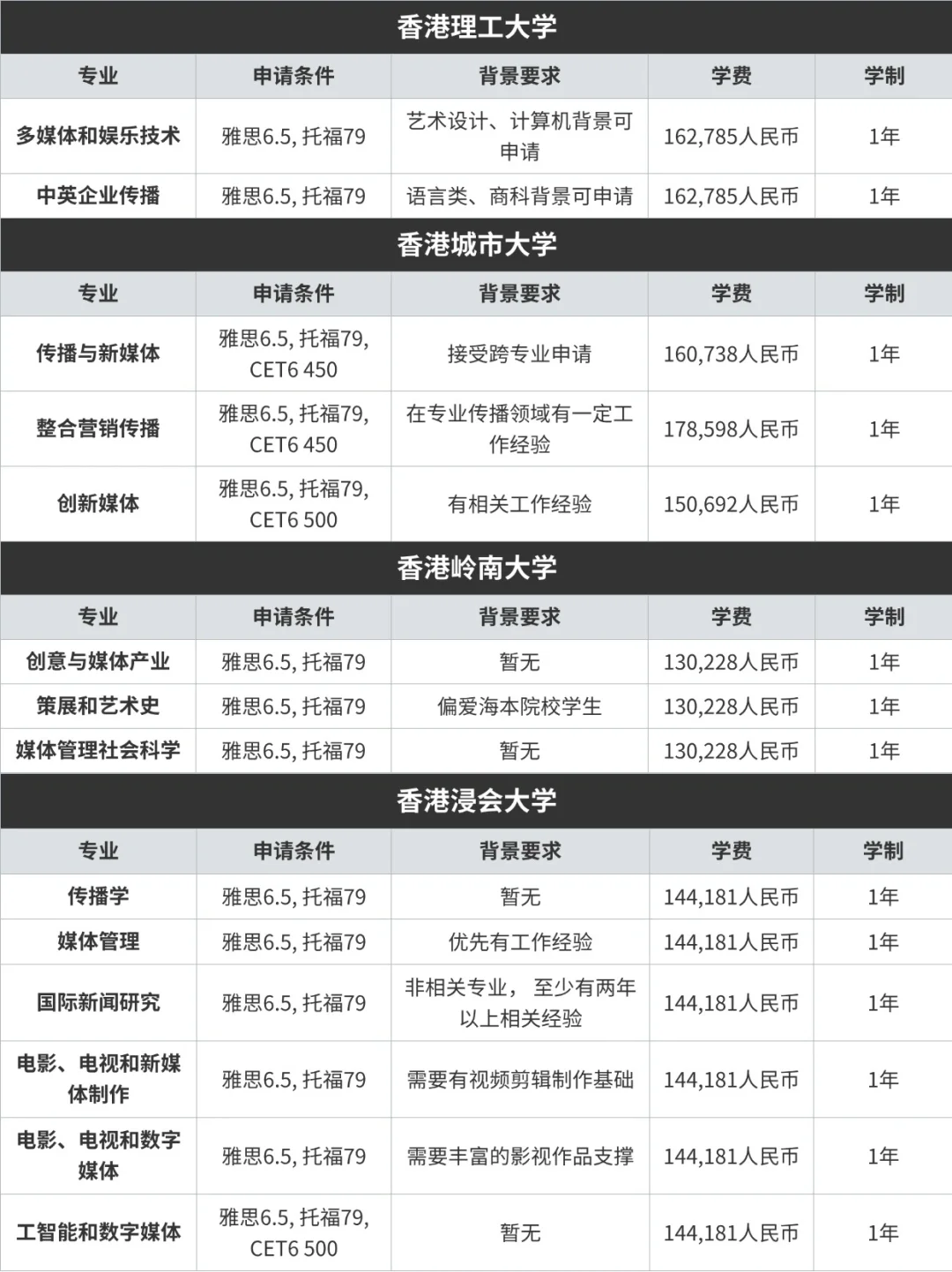 香港的传媒专业设置非常全面,涵盖了传媒的各个方向,如创意及媒体产业、新闻、传播、新媒体、影视制作等专业都有设置📚。