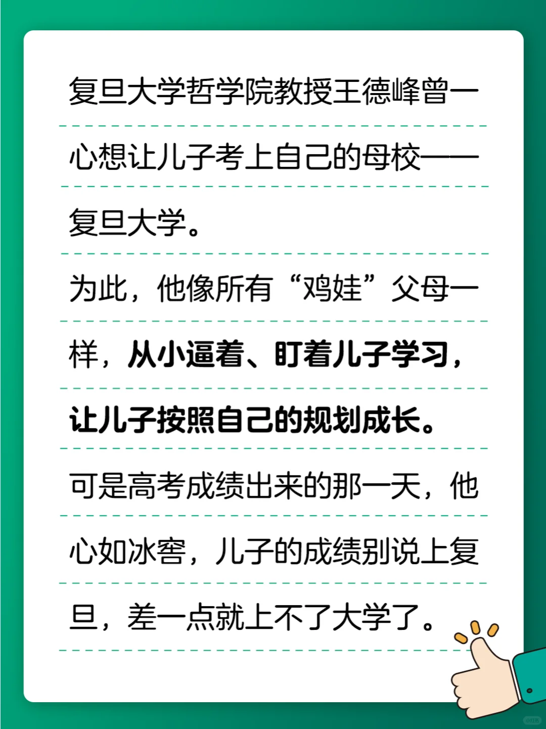 复旦大学哲学院教授王德峰曾一心想让儿子考上自己的母校——复旦大学。🎓