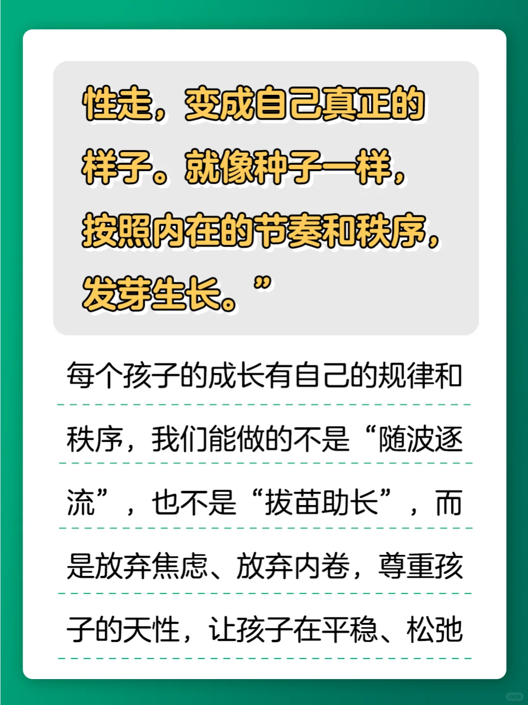 “人需要按照自己的天性走,变成自己真正的样子。就像种子一样,按照内在的节奏和秩序,发芽生长。”🌱