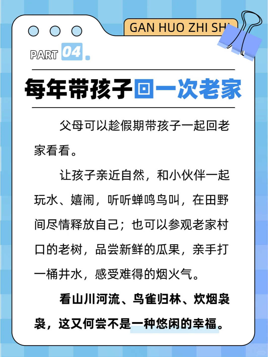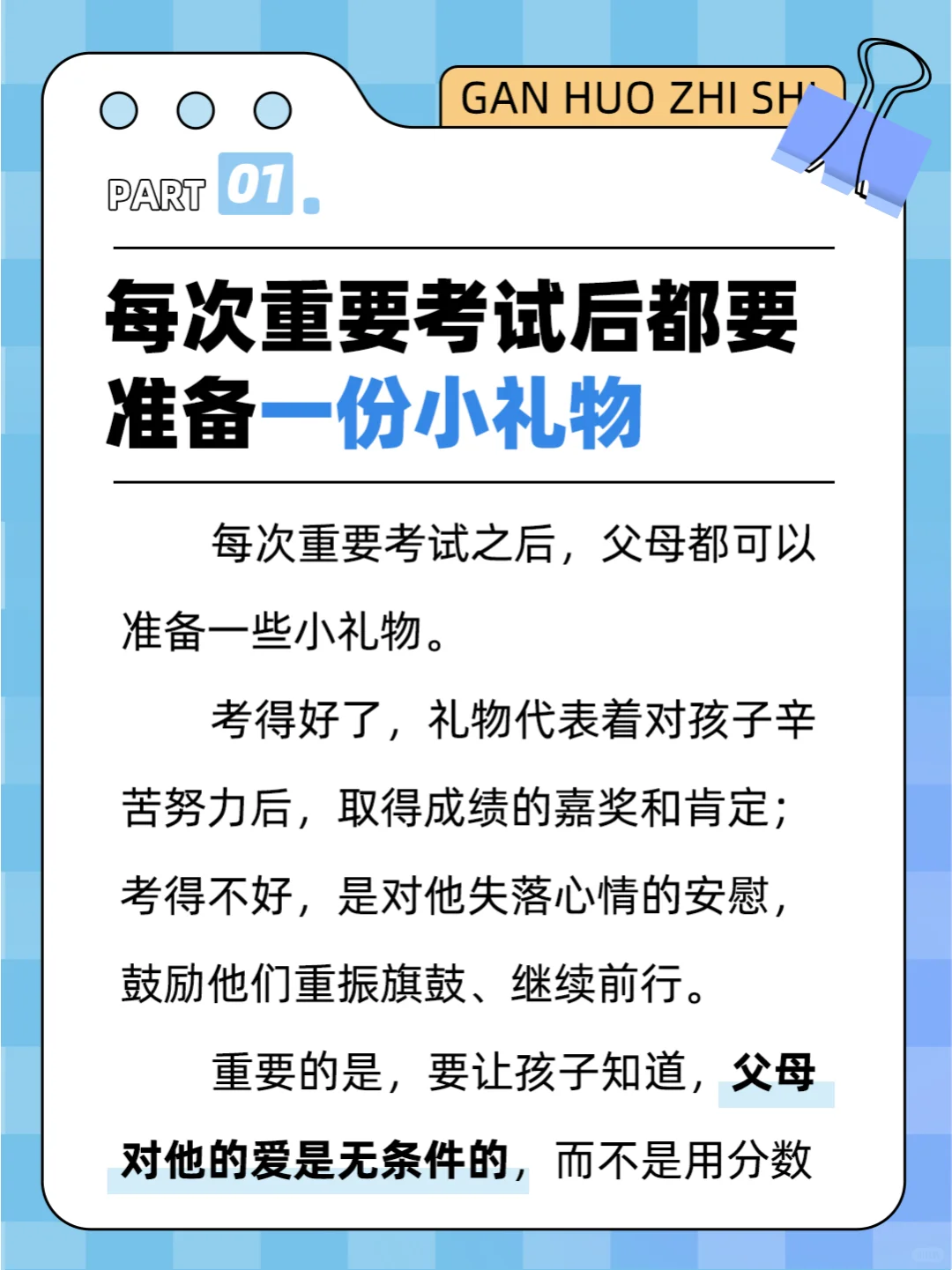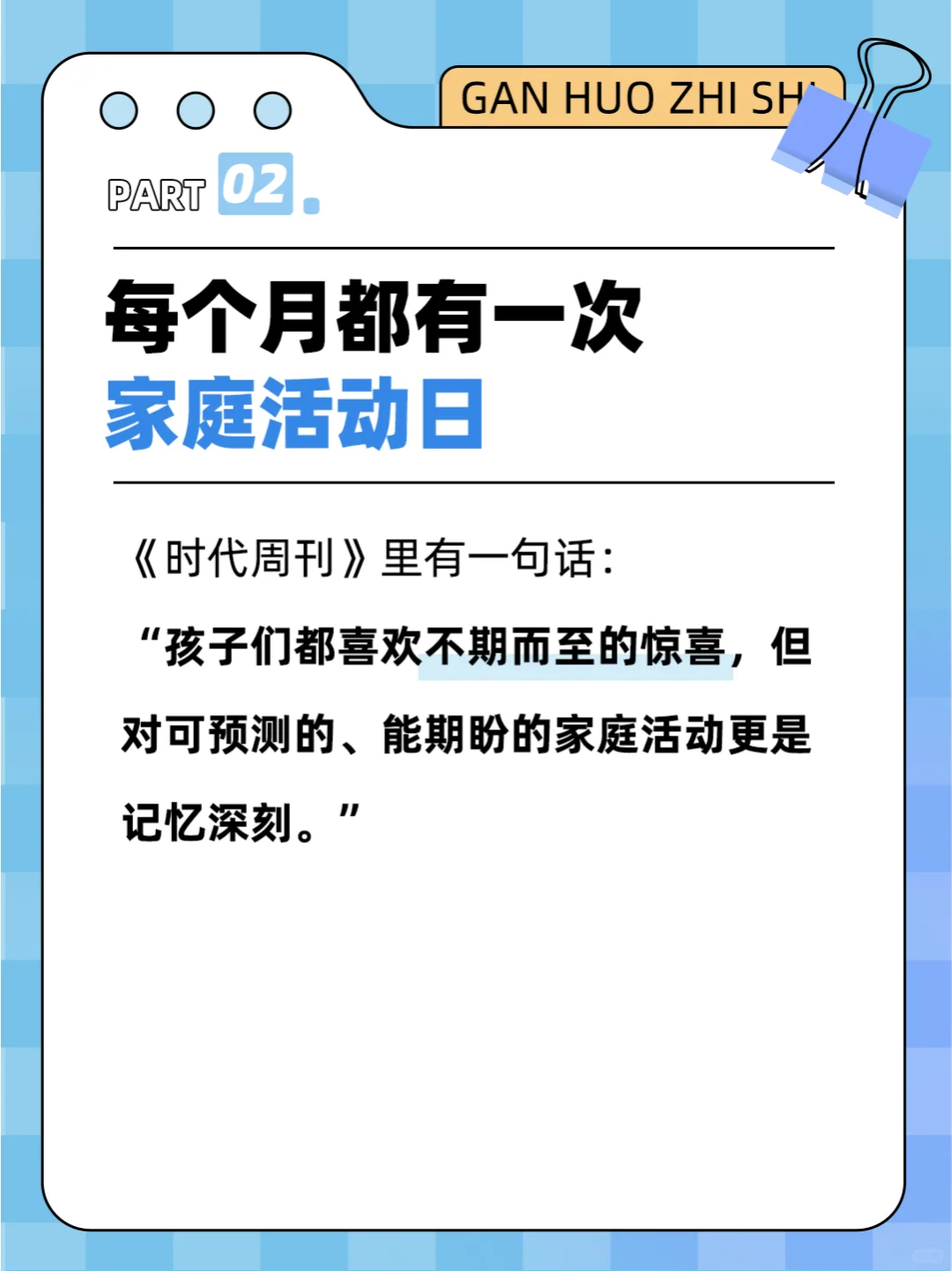 1️⃣🎁每次重要考试后都要准备一份小礼物 2️⃣🎈每个月都有一次家庭活动日 3️⃣🎂重视孩子的每个生日以及重大节日🎉 4️⃣🏡每年带孩子回一次老家 5️⃣📸每年都和孩子拍照留念
