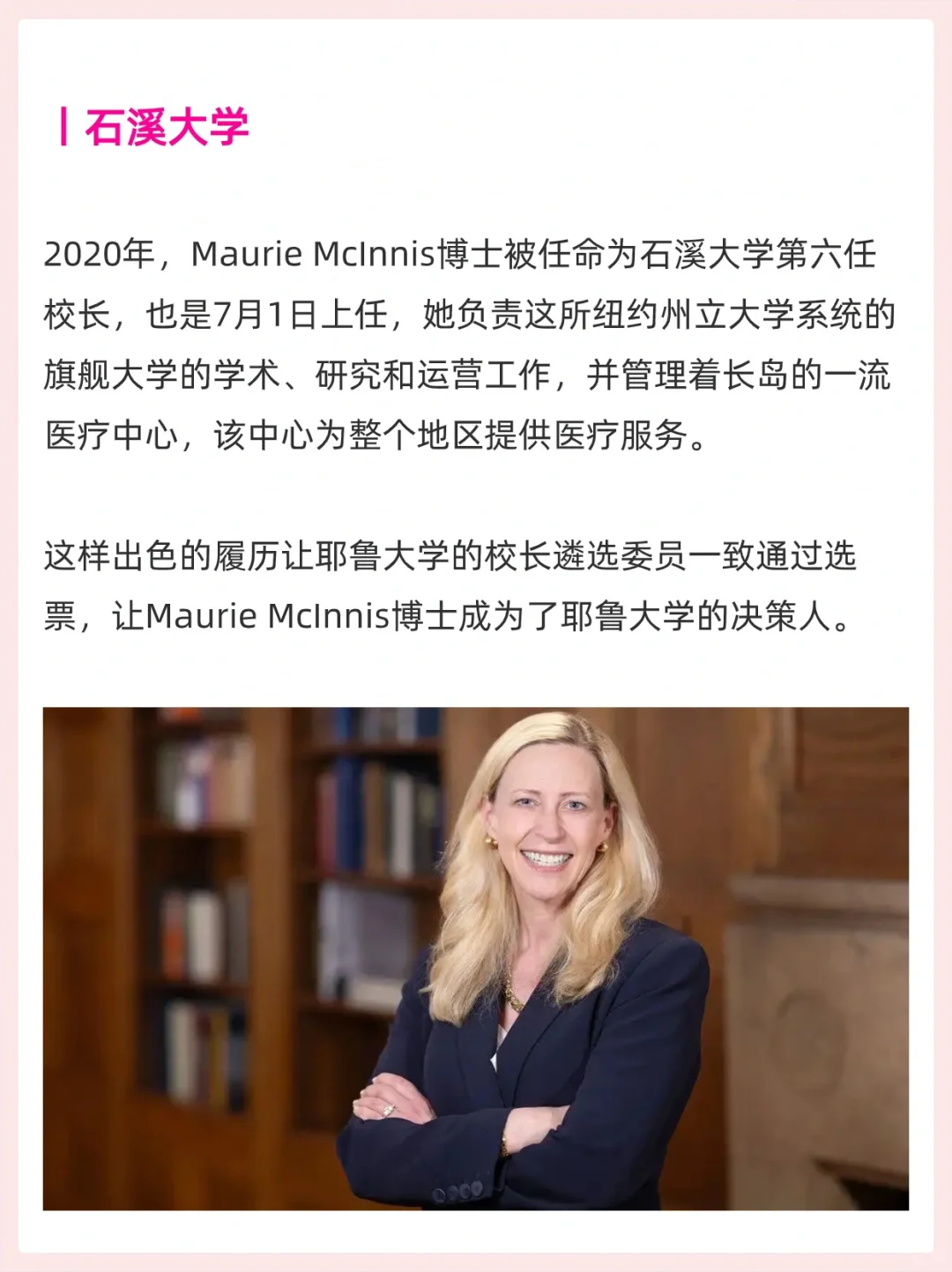 耶鲁大学第24位校长人选出炉,将于7月1日上任,她就是耶鲁校史上的第一位女性校长——Maurie McInnis博士。