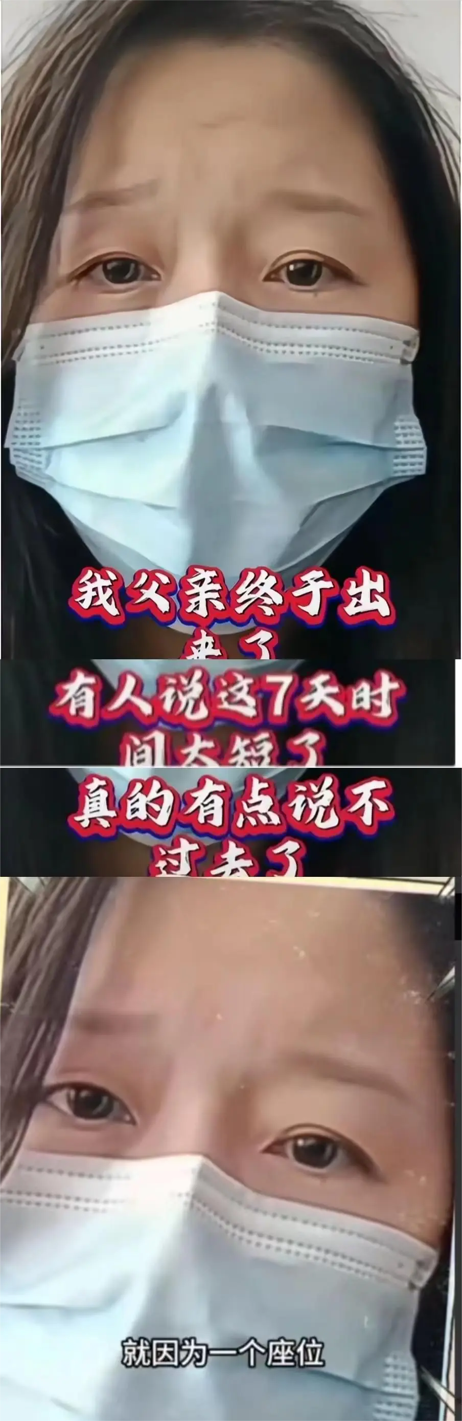 他女儿看着年纪也不小了,戴着个口罩,满眼都是委屈。