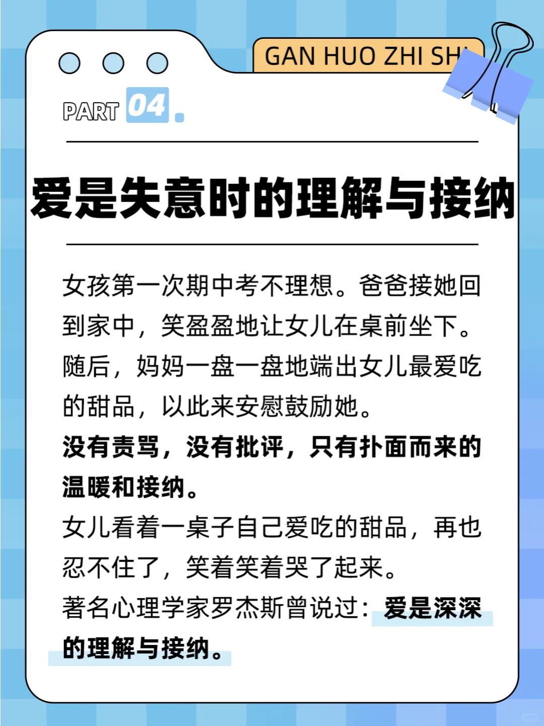 在孩子的成长过程中,我们的爱能给他们最深的安全感。那么,我们该如何让孩子感受到这份安全感呢?下面我将和大家分享一些实用的方法。📚 1️⃣爱是尊重孩子的天性允许他尽情释放🎨 2️⃣爱是犯错后的安慰与包容🤗 3️⃣爱是从不扫兴,永远为你捧场🎉 4️⃣爱是失意时的理解与接纳🤝