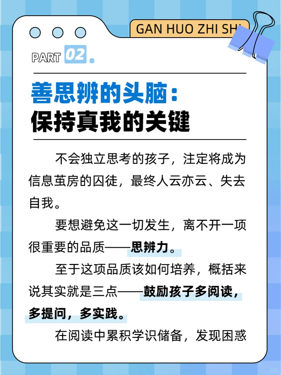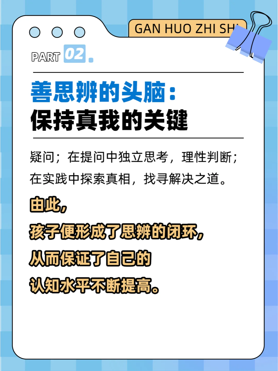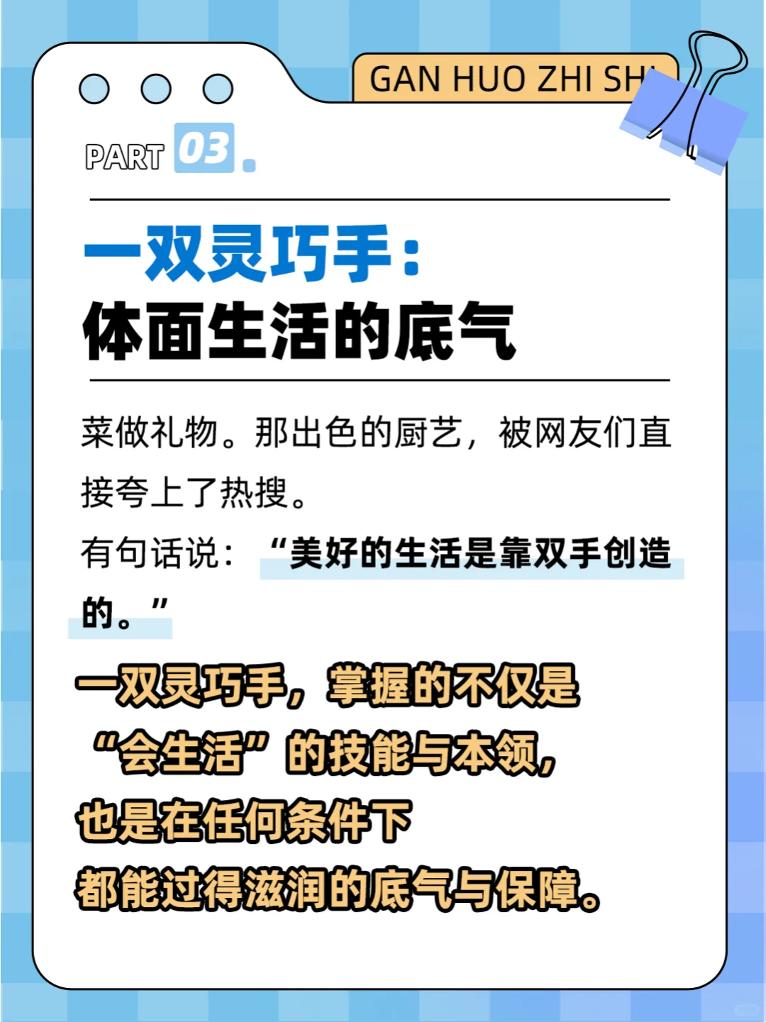 1️⃣一个好身体:从容应对挑战的前提 💪 2️⃣善思辨的头脑:保持真我的关键 🧠 3️⃣一双灵巧手:体面生活的底气 🙌