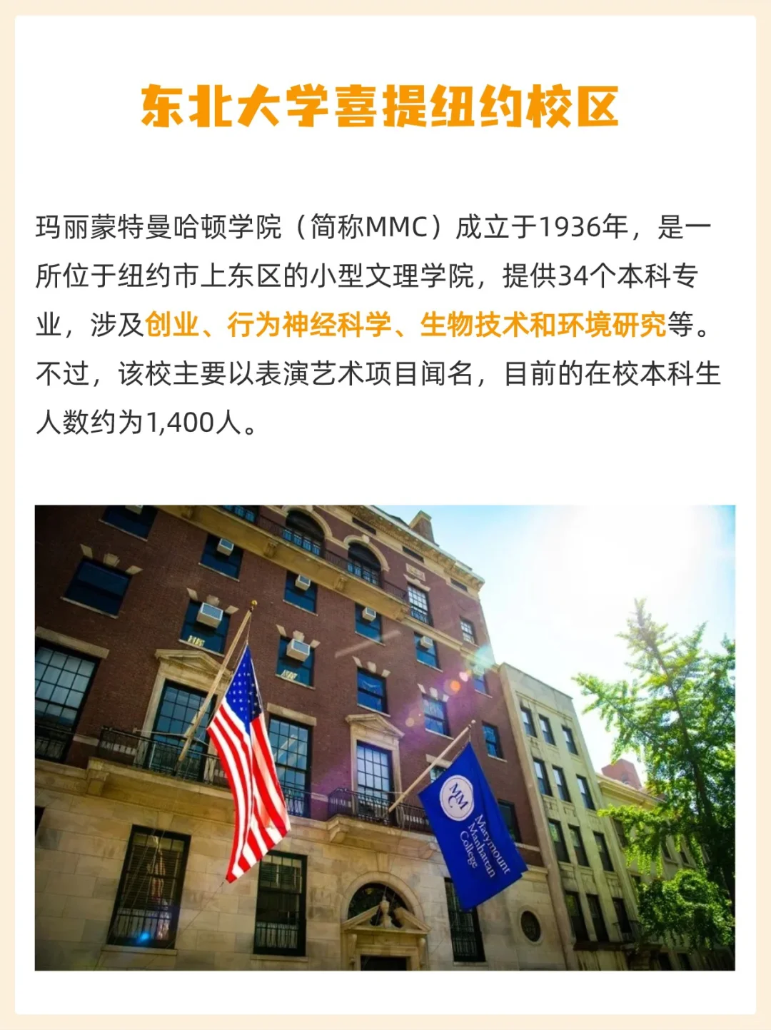 美东时间5月29日,位于波士顿的东北大学(2024 U.S. News全美综合性大学第53名)宣布,位于纽约曼哈顿的的Marymount Manhattan College(玛丽蒙特曼哈顿学院,简称MMC)将被合并为东北大学的新校区——东北大学纽约校区!