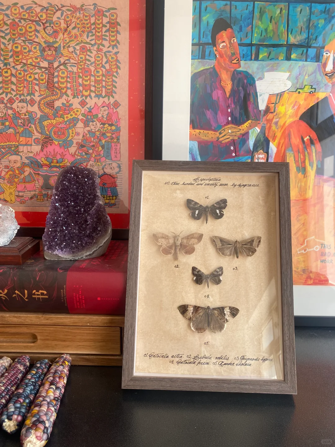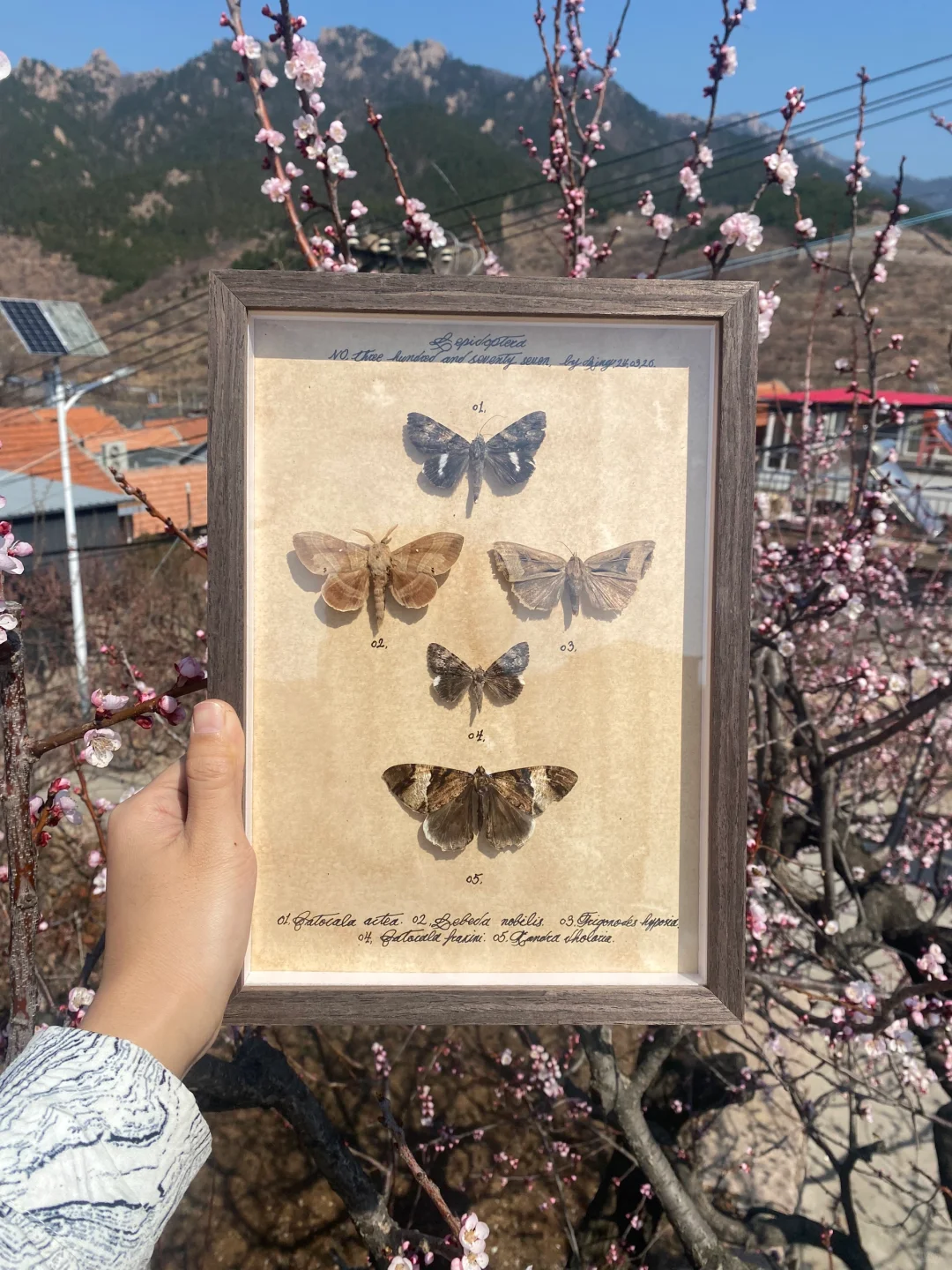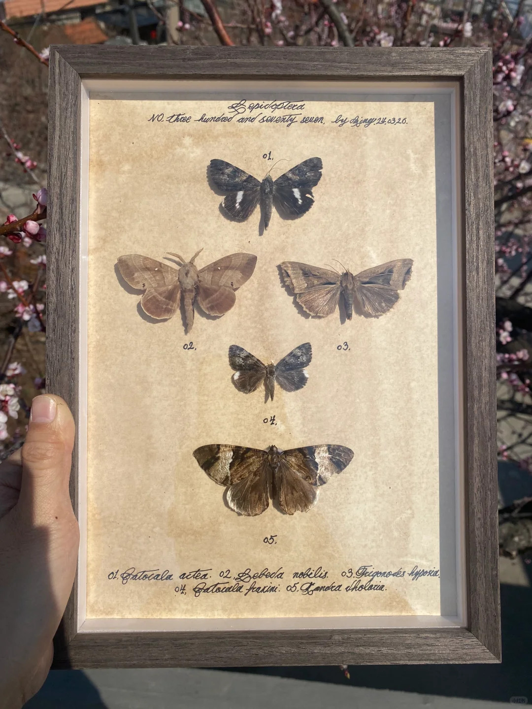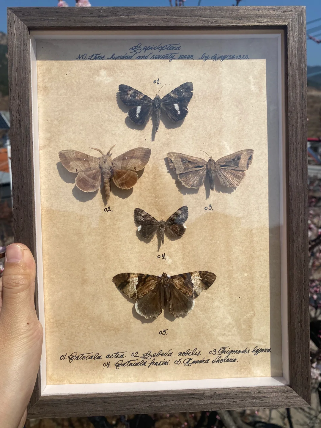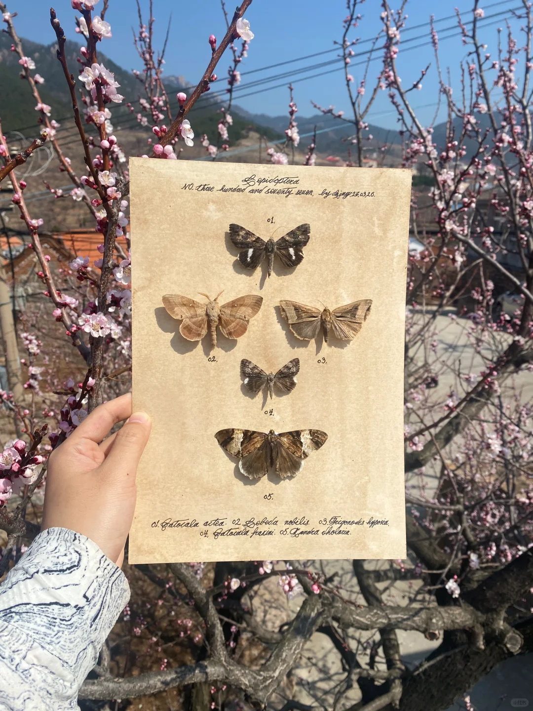 这个作品我做好之后竟然没有发出来,现在看看还是制作于杏花盛开的时候呢。昨夜下了一场大雨,今天睡醒一看门外的小河里有了好多水。我之前灯诱的蛾子还没做成标本,等做好之后再排版几幅。